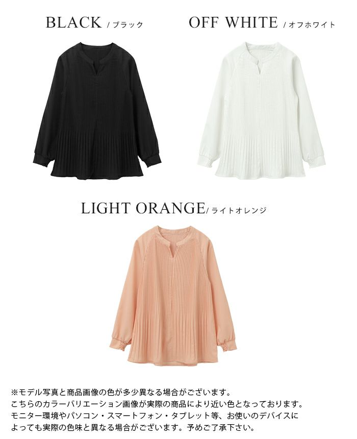 ブラウス トップス レディース 女性 プリーツ プリーツブラウス 長袖 春 春服 キーネック ラグランスリーブ シャーリング フレア フレアシルエット デイリー オケージョン ブラック 黒 黒色 オフホワイト 白 白色 ライトオレンジ M M 10代 10代 20代 20代 30代 30代 40代 40代 50代 50代 60代 60代 春 スプリング 体型カバー 大人 おとな オトナ 女性らしい 可愛い かわいい カワイイ 大人可愛い おとなカワイイ おとなかわいい 綺麗め きれいめ キレイめ 上品 通学 通学コーデ 通勤 通勤コーデ オフィスコーデ オフィスカジュアル テレワーク テレワークコーデ 在宅 在宅勤務 在宅ワーク 在宅コーデ ギフト プレゼント 誕生日 クリスマス 母の日 贈り物 休日 お出かけ お買い物 旅行 観光 女子会 ママ友会 学生 社会人 ママ ママコーデ アラサー アラサーコーデ アラフォー アラフォーコーデ アラフィフ アラフィフコーデ 大人コーデ キレイめコーデ カジュアルコーデ レディースファッション Happy急便 ハッピー急便 はっぴーきゅうびん ハッピーキュウビン