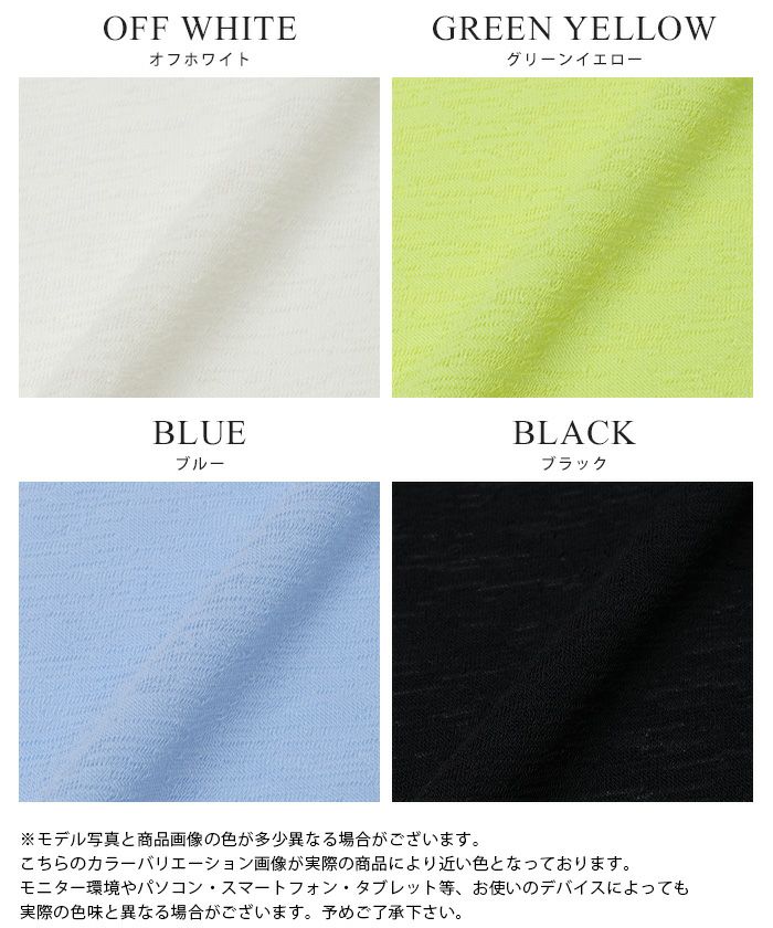 ※繊維製品のため、同じ商品であっても生産時期やカラーによって伸縮率・生地感・色味が多少異なる場合がございます。特にニット製品に関してはプレス・洗い加工等で5cm前後の誤差が生じる場合がございます。