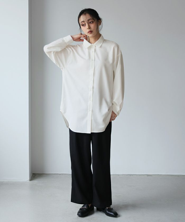 ゆったりとしたサイズ感なので、Tシャツの上からでも楽に羽織れます。