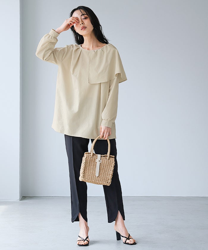 ランダムプリーツボトルネックトップス