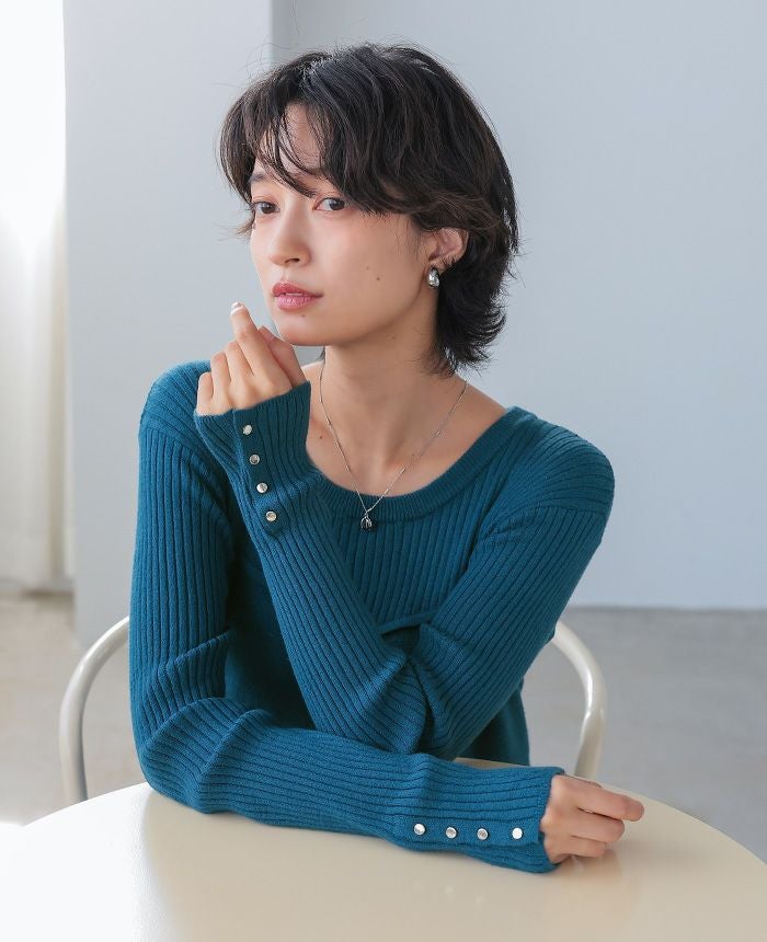 梨地ボートネックトップス