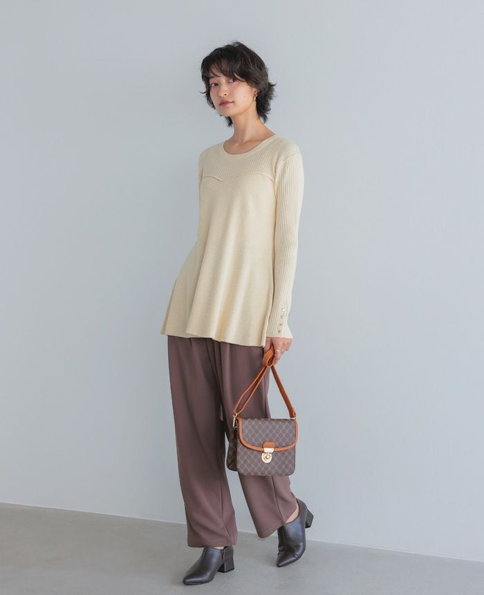 ニット×プリーツフレアトップス