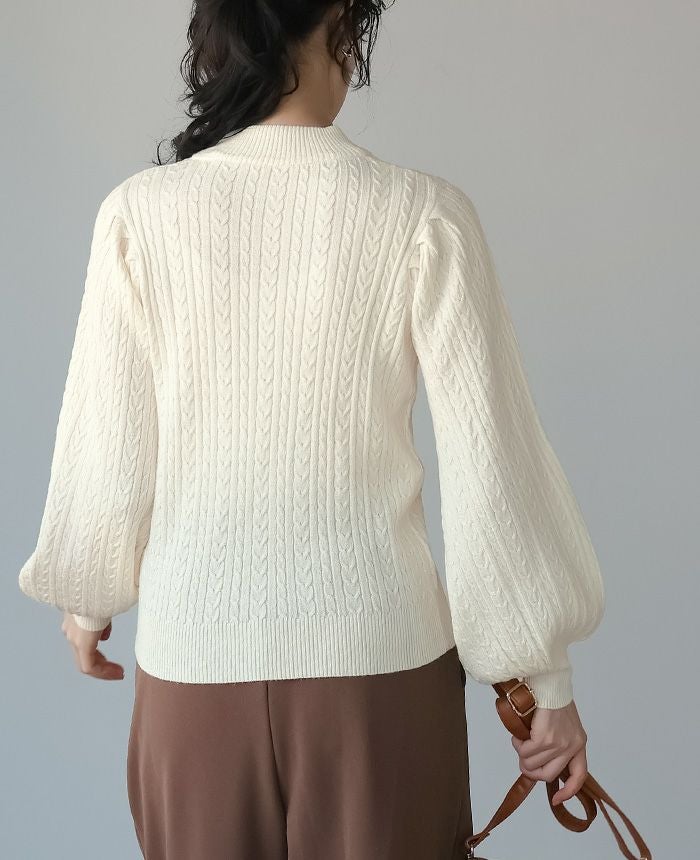 もちもち柄編みパフ袖ニット