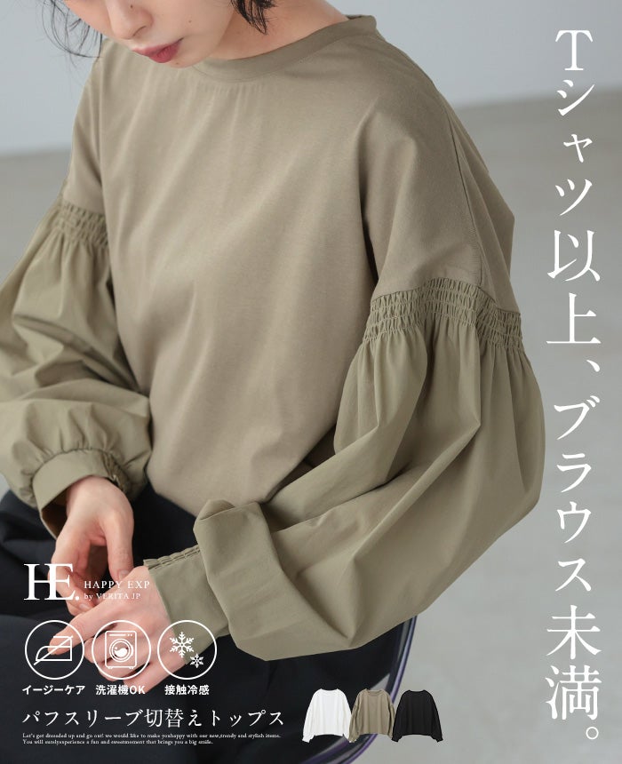 パフスリーブ切替トップス
