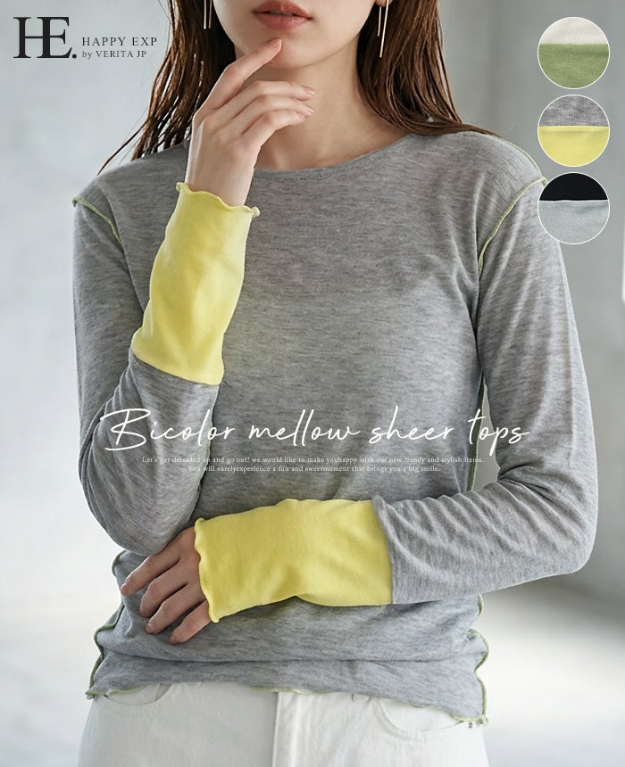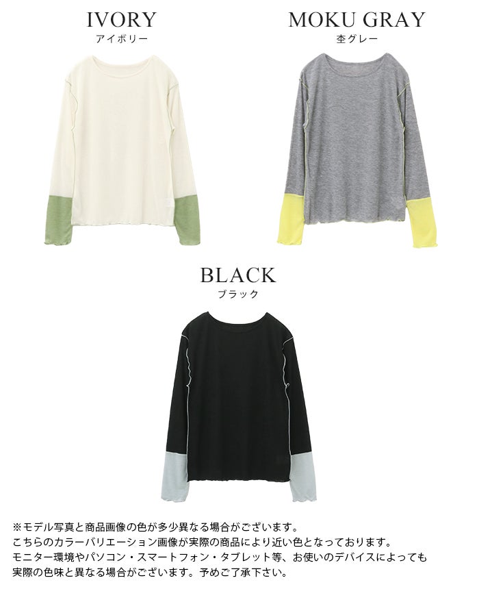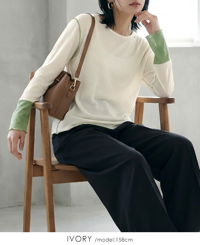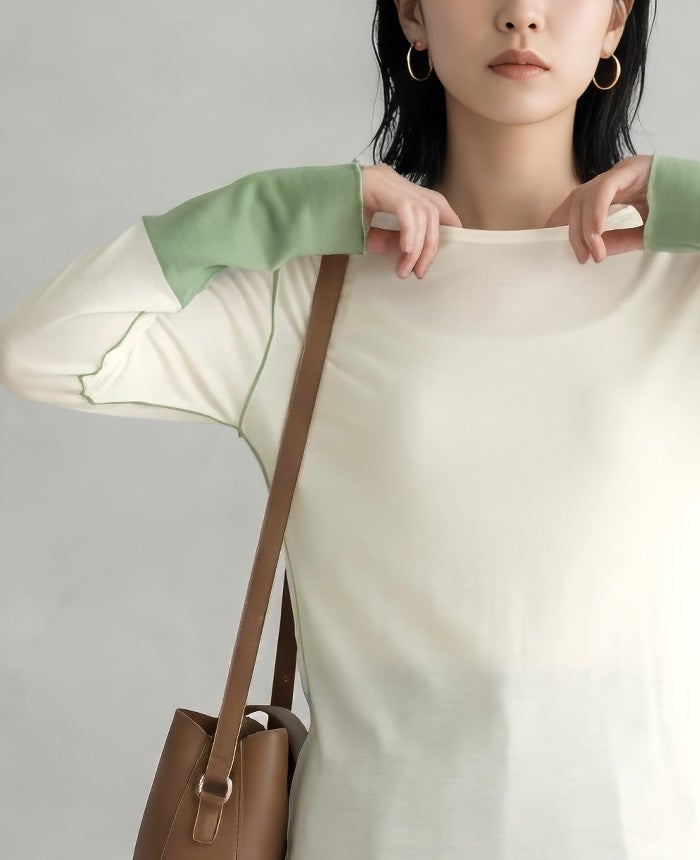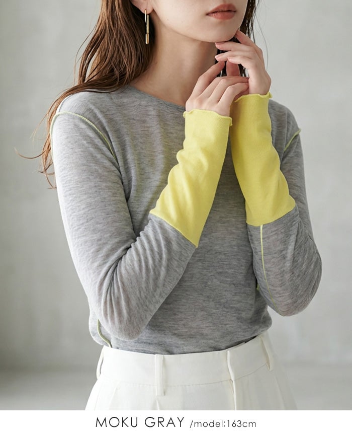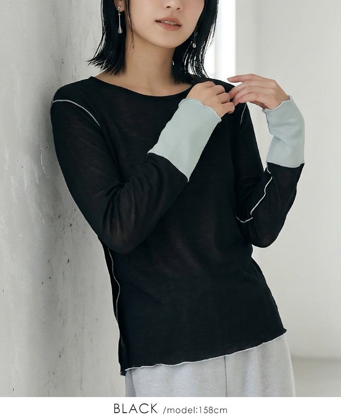 袖配色シアートップス