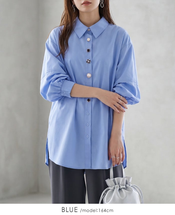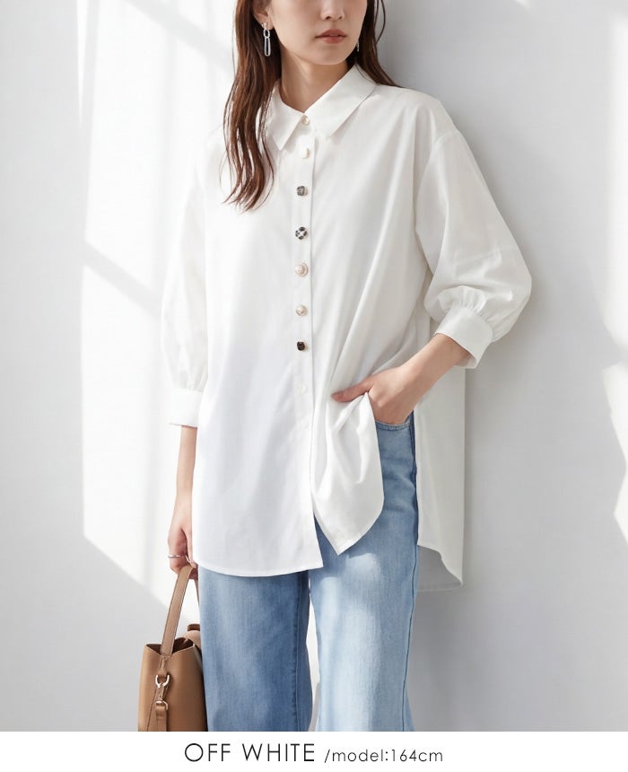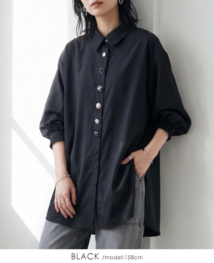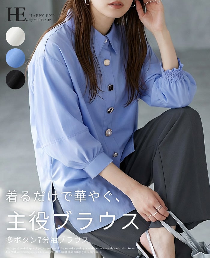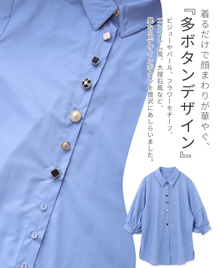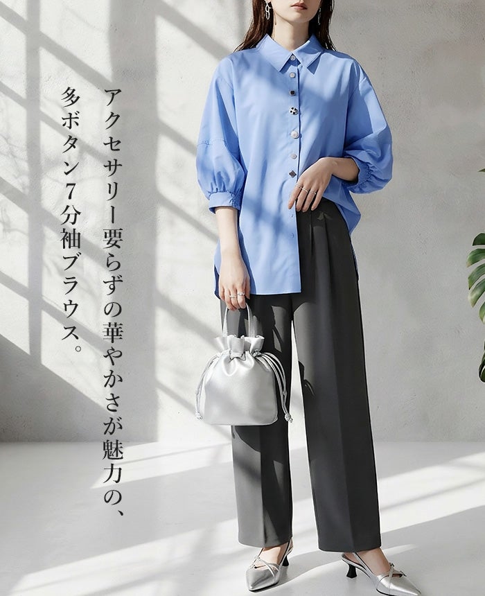 多ボタン七分袖ブラウス