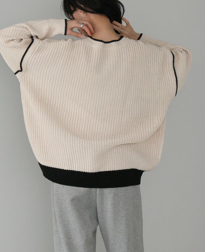 ダンボールニット配色コクーントップス