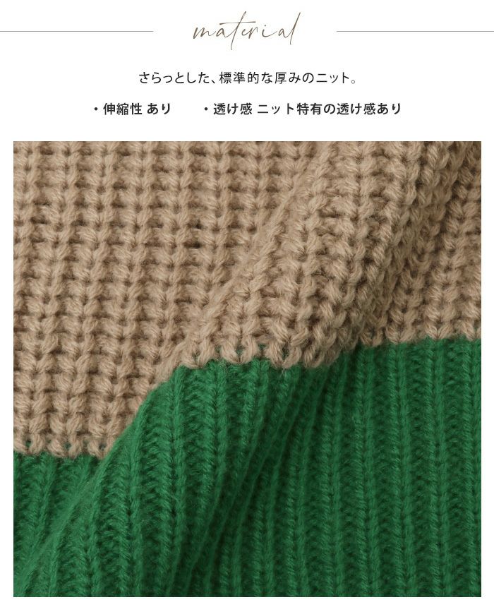 配色リブニットボトルネックセーター