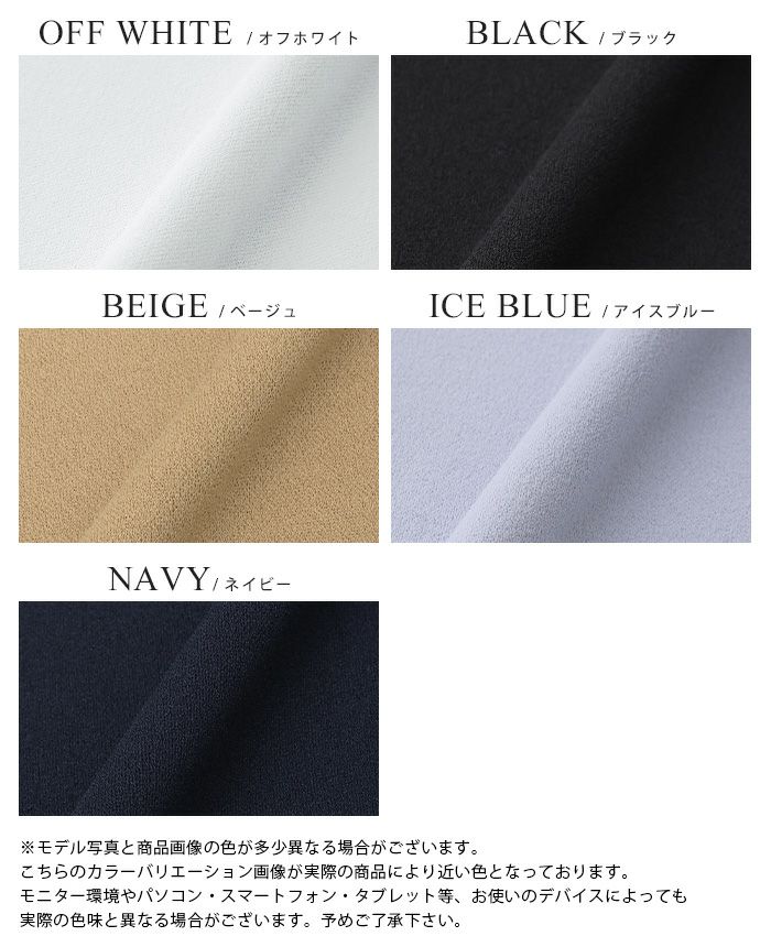 ※繊維製品のため、同じ商品であっても生産時期やカラーによって伸縮率・生地感・色味が多少異なる場合がございます。特にニット製品に関してはプレス・洗い加工等で5cm前後の誤差が生じる場合がございます。