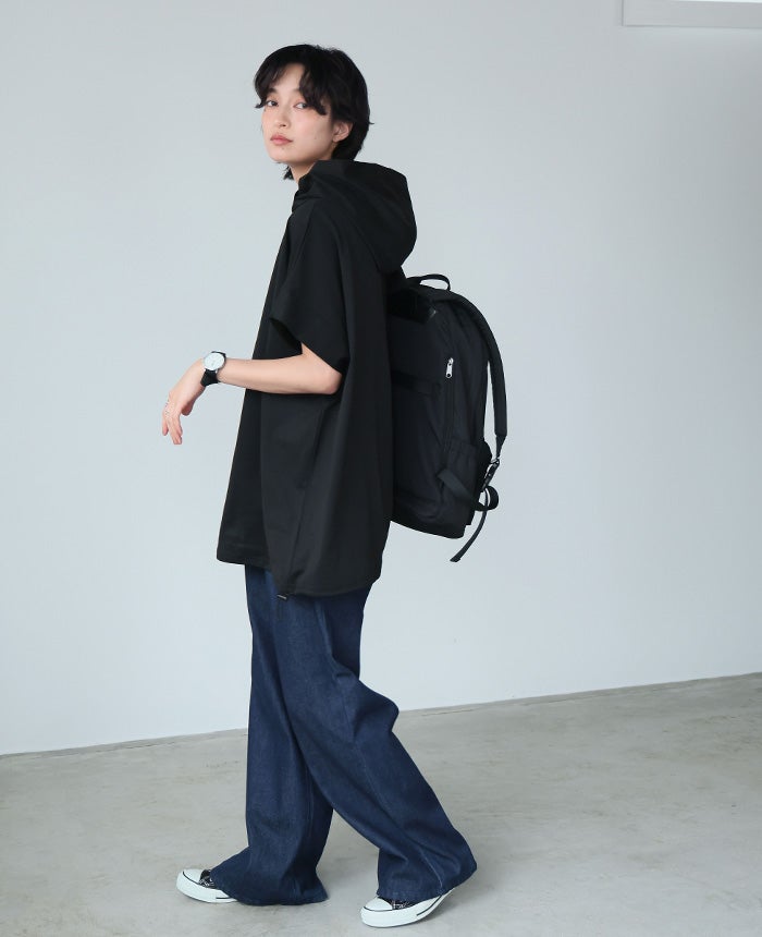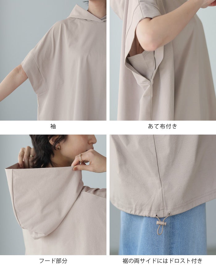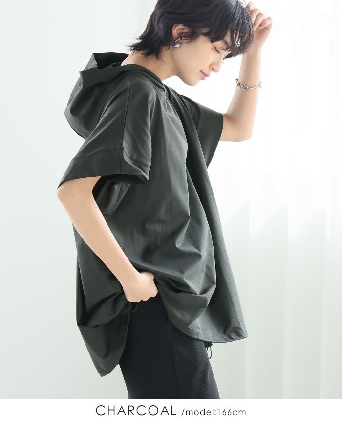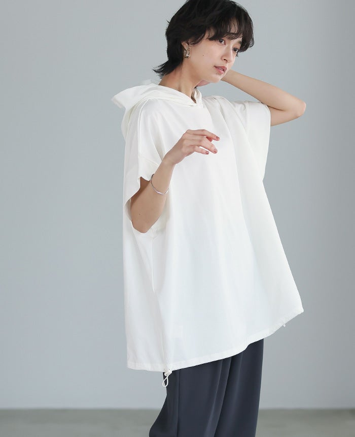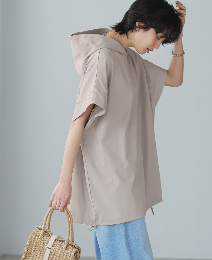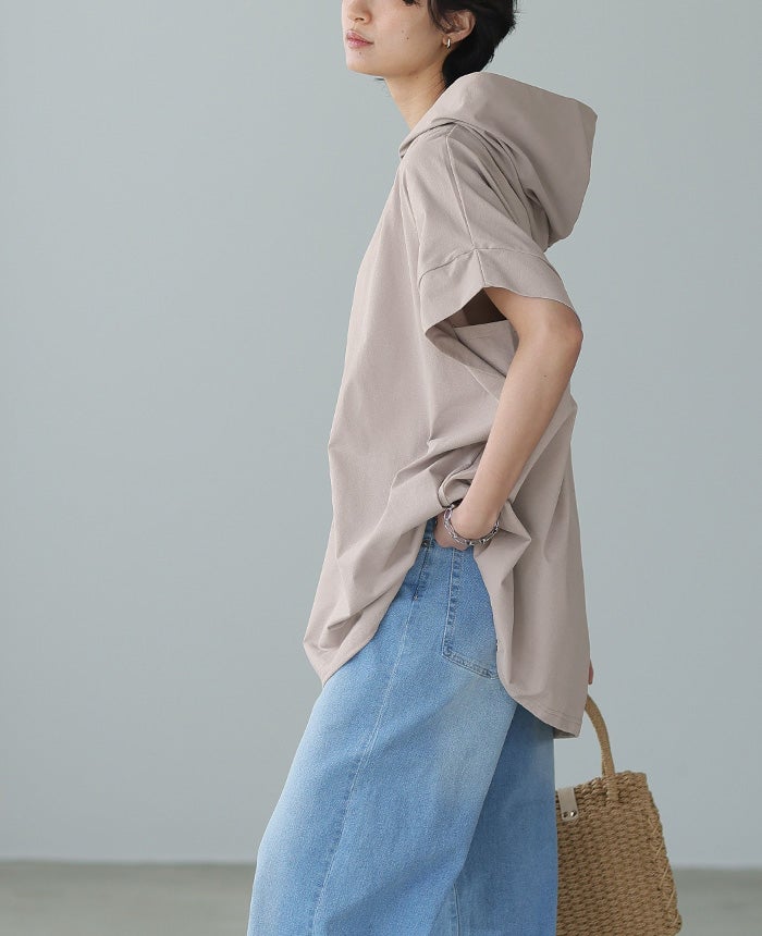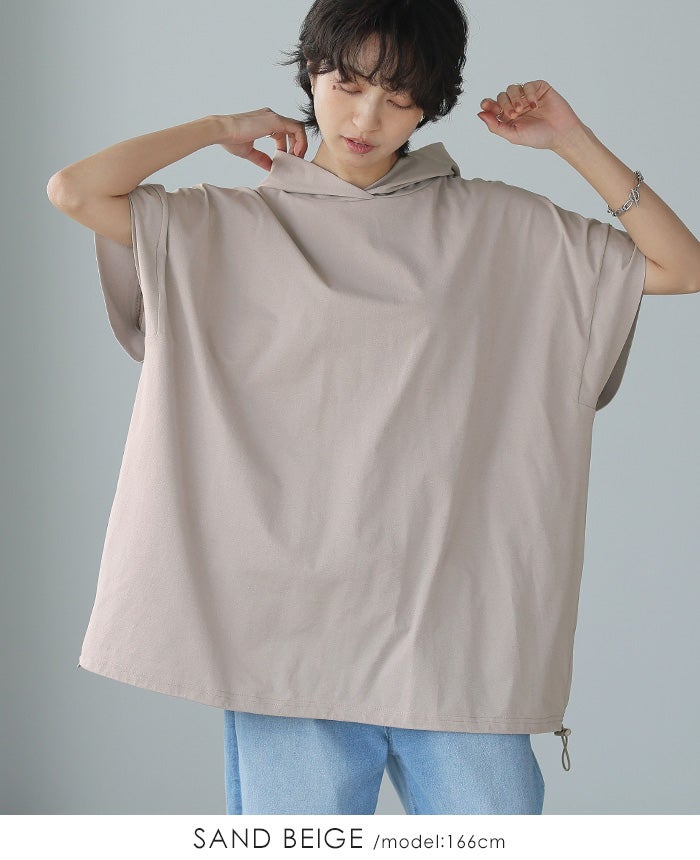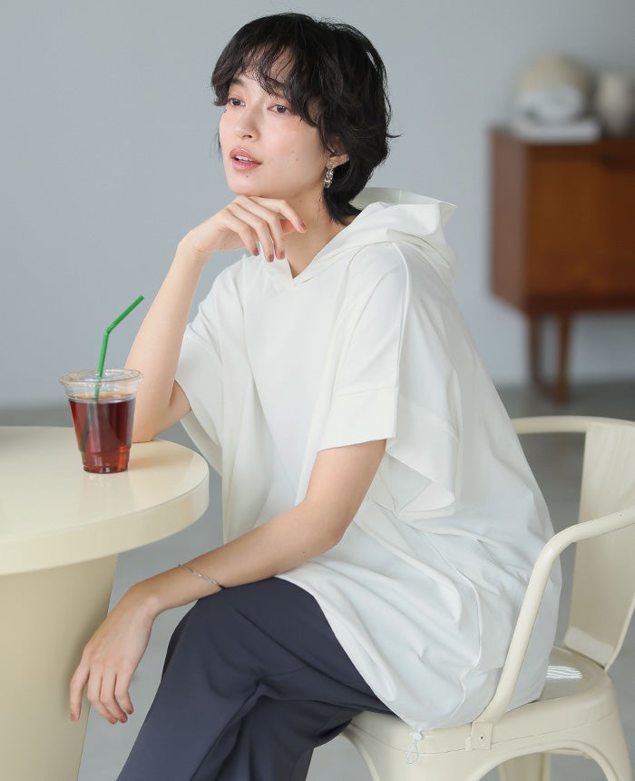 ゆったりとした、リラックス感のある半袖のパーカー。