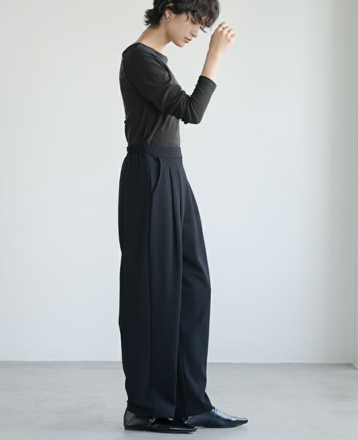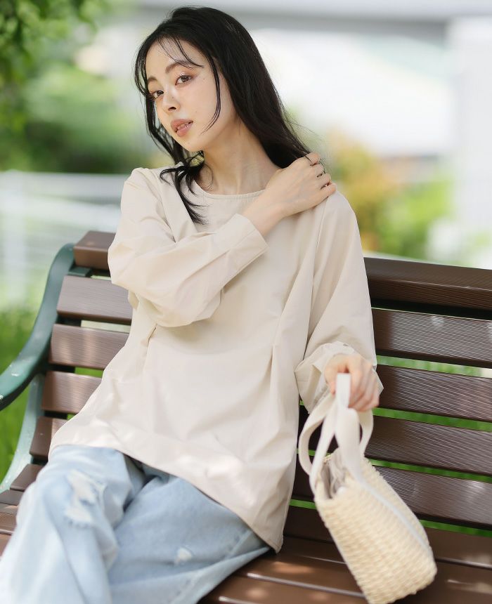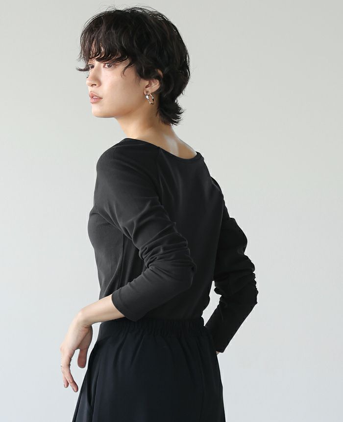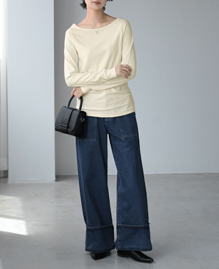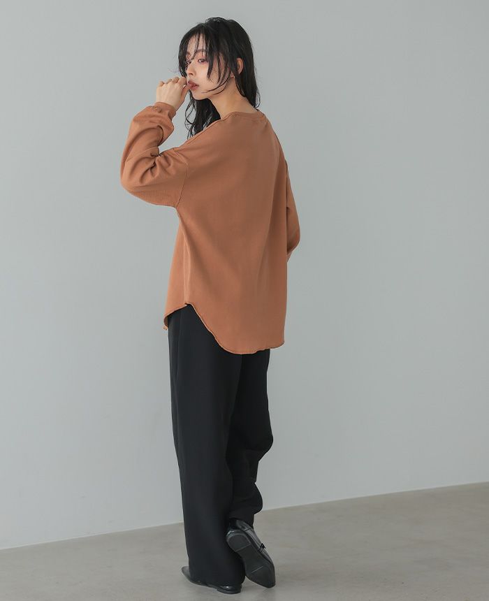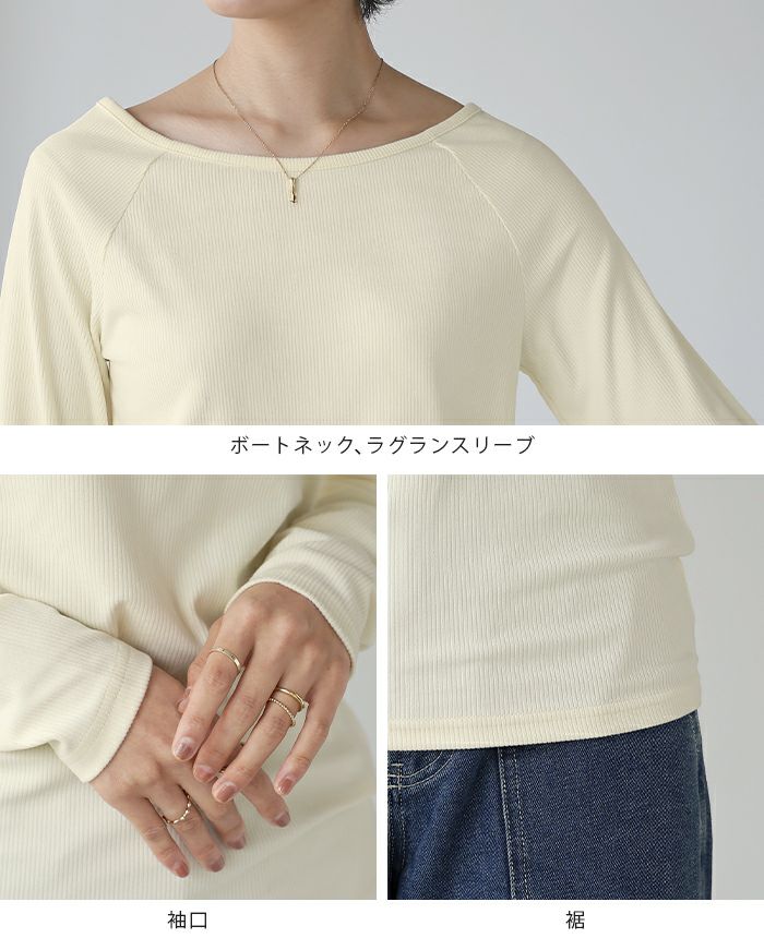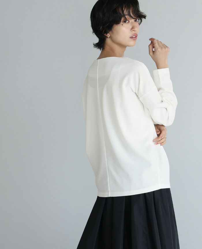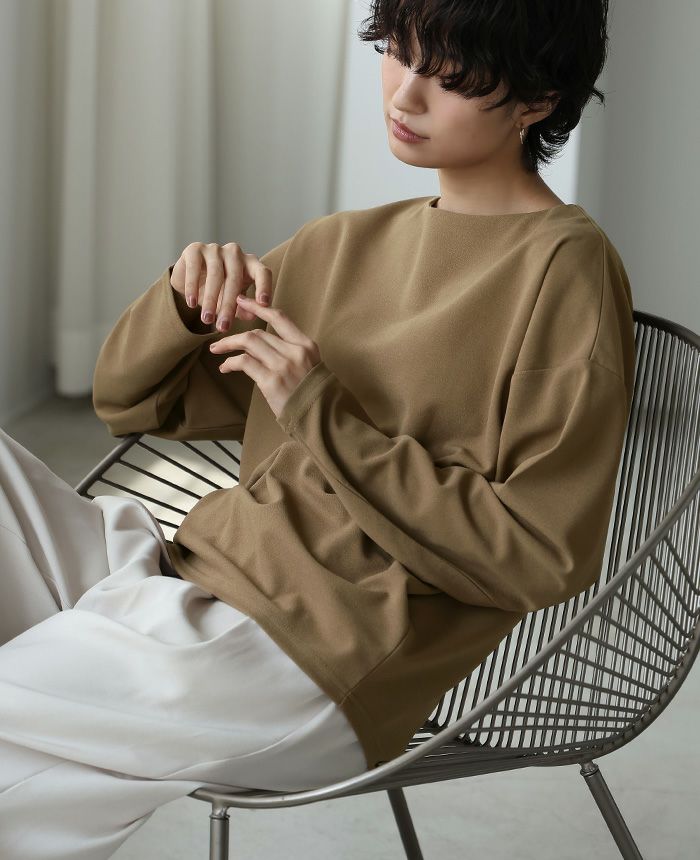 梨地ボートネックトップス
