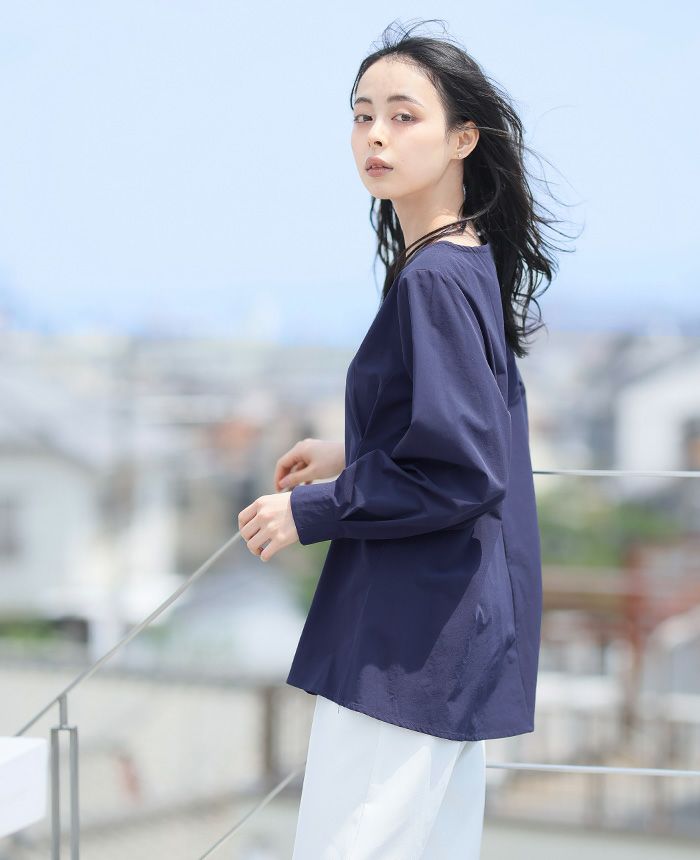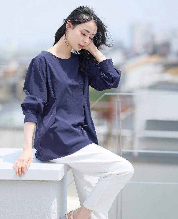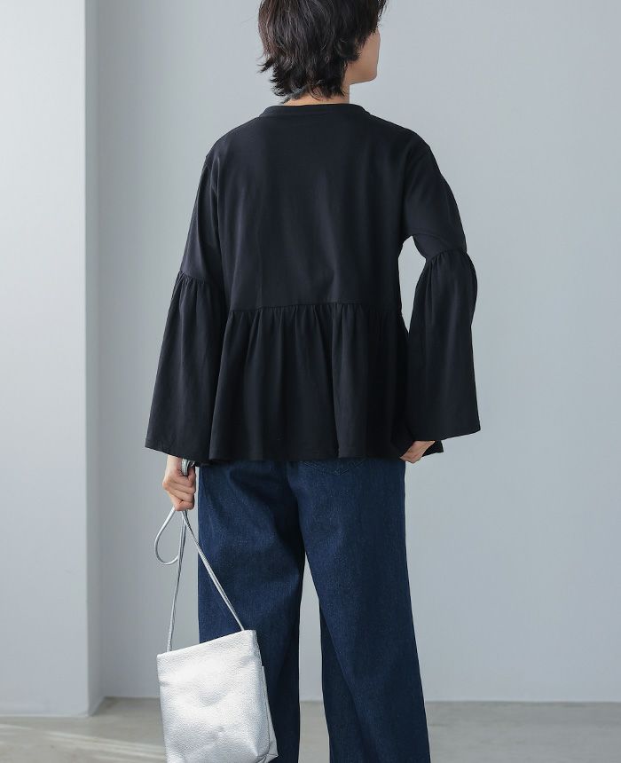 袖シャーリングトップス