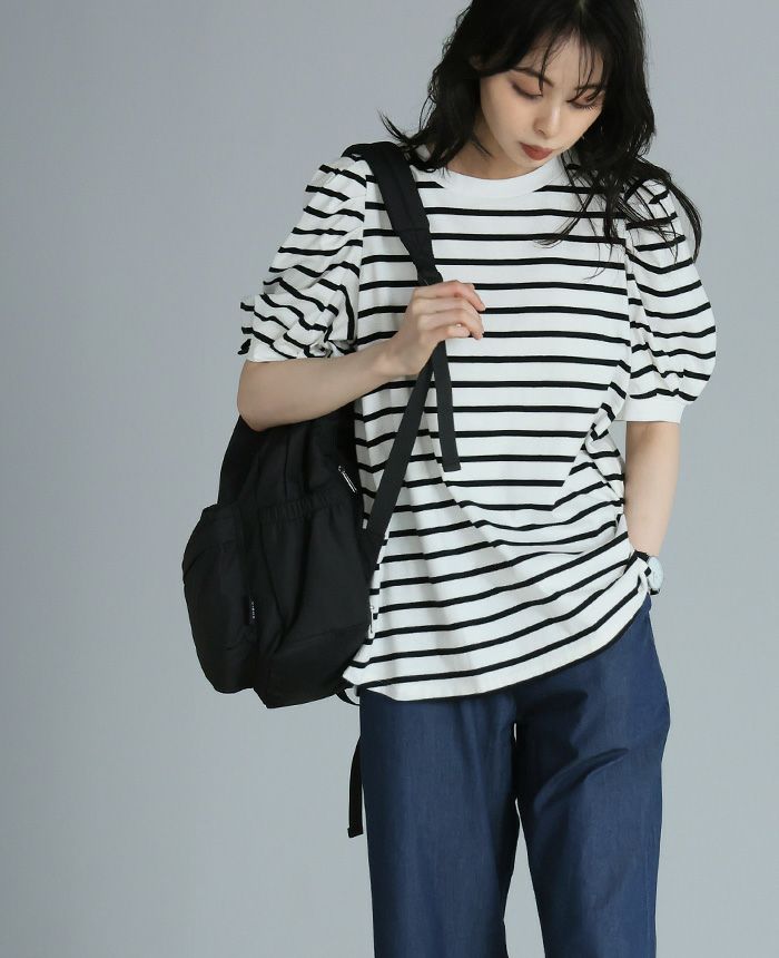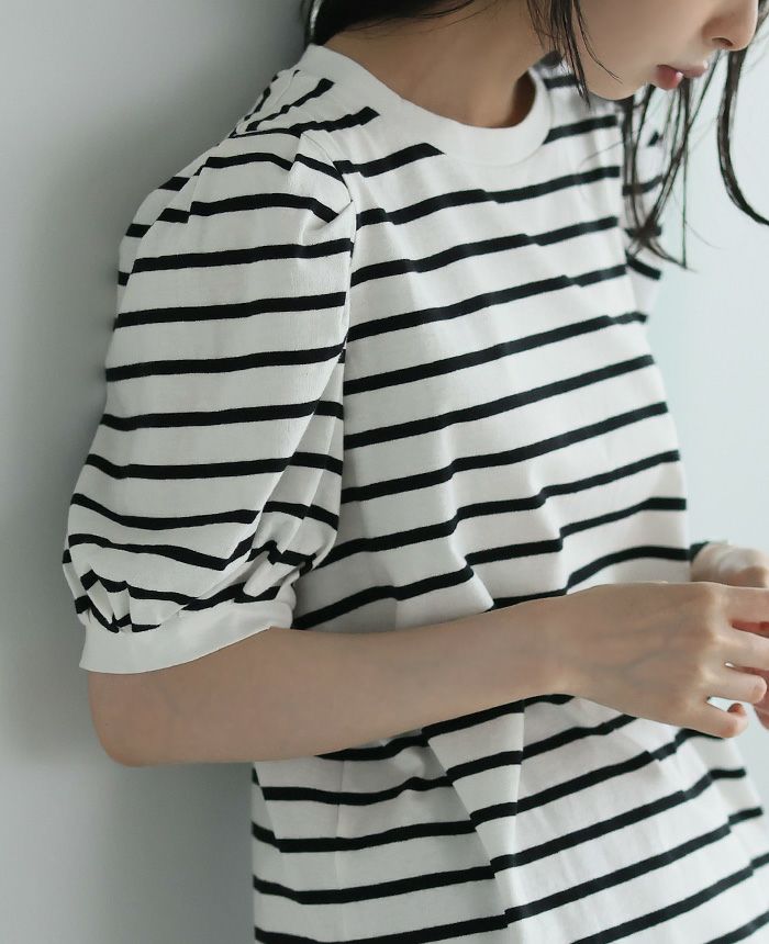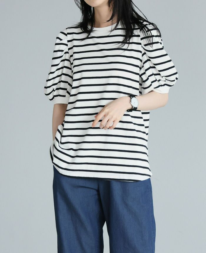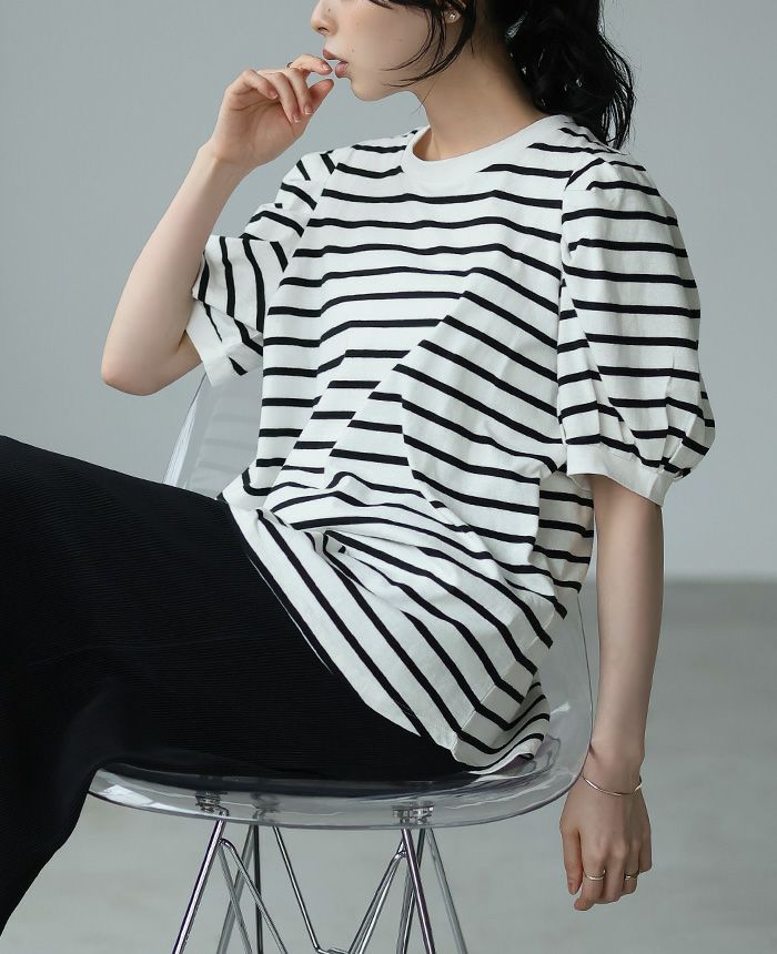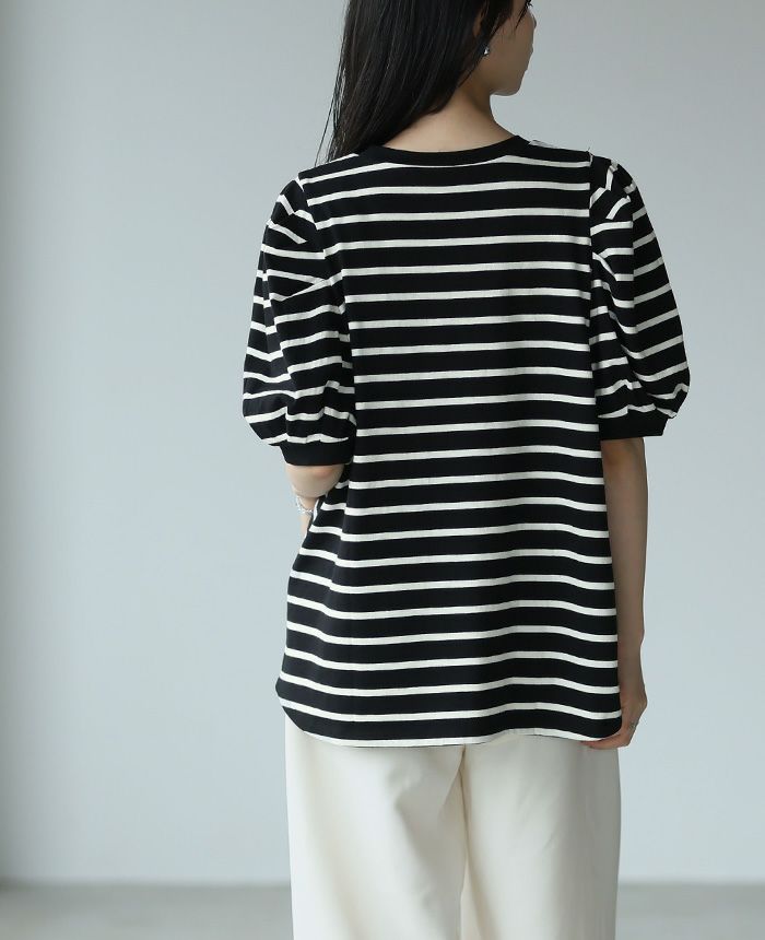 ボーダーパフスリーブトップス