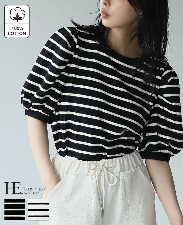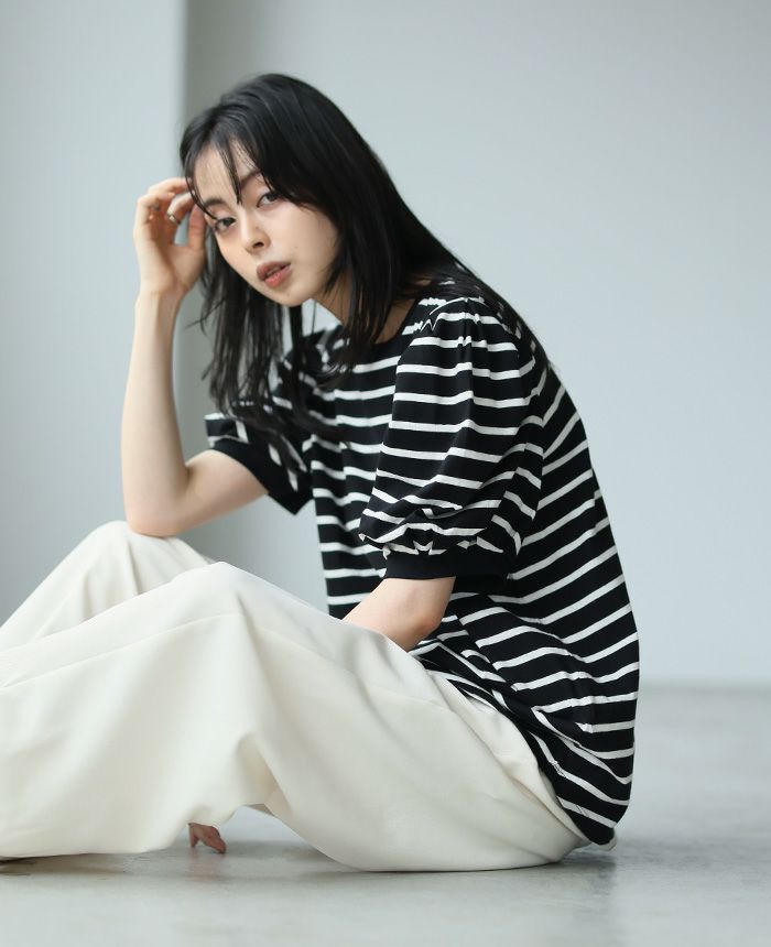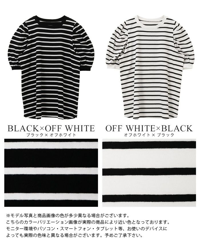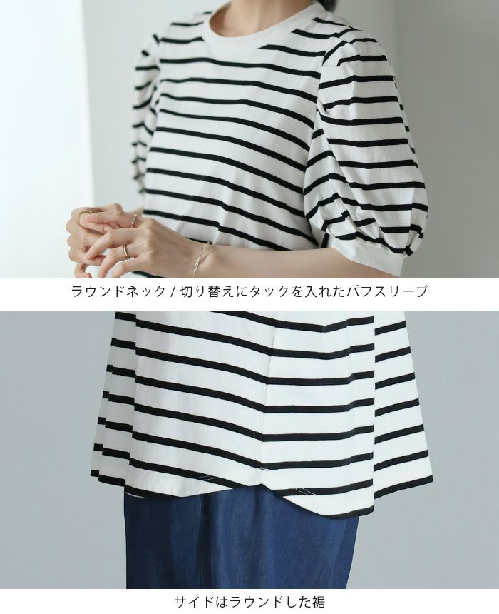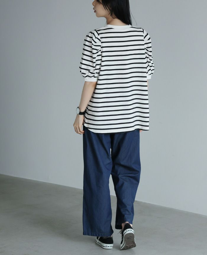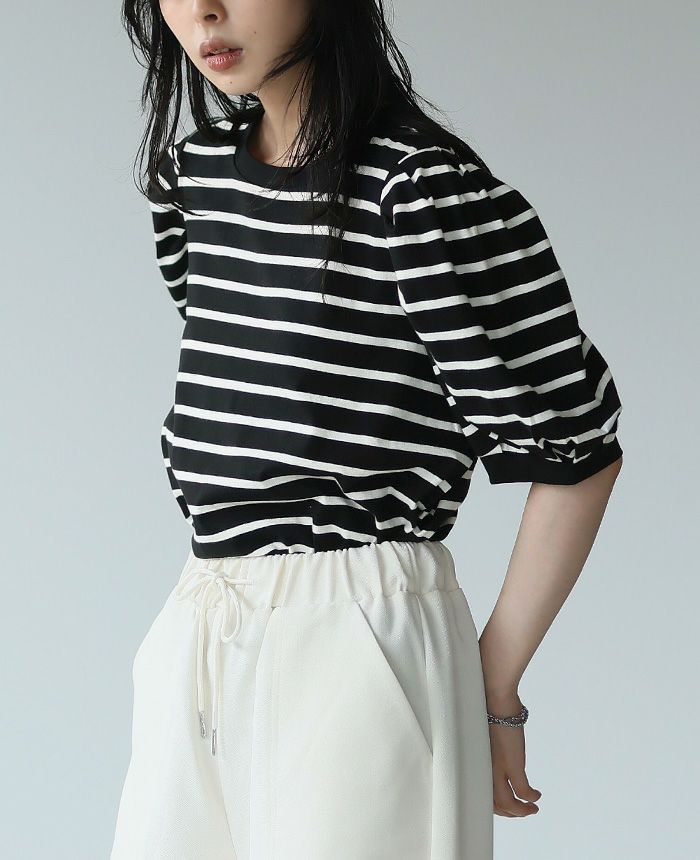 ボーダーパフスリーブトップス