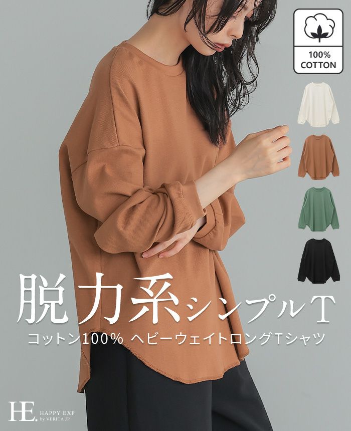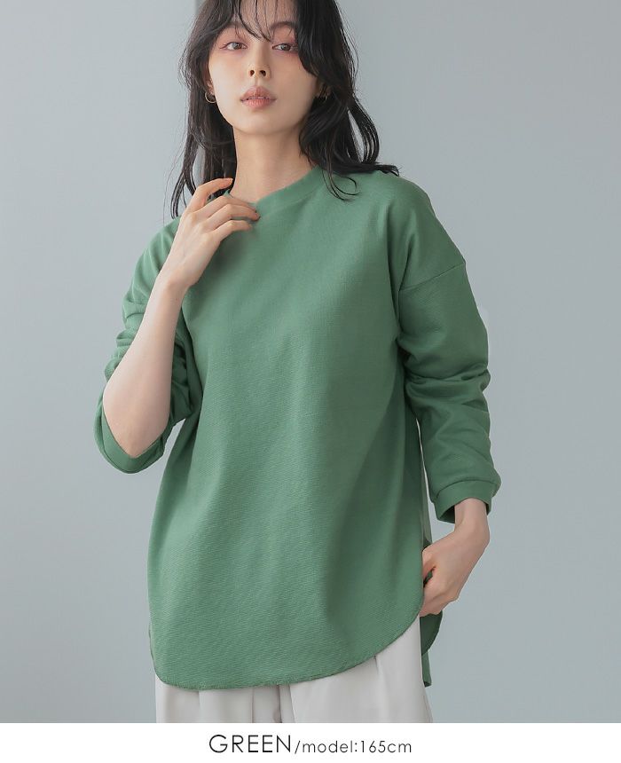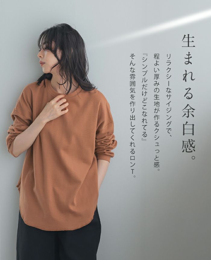 綿100%ラウンド裾ロングTシャツ