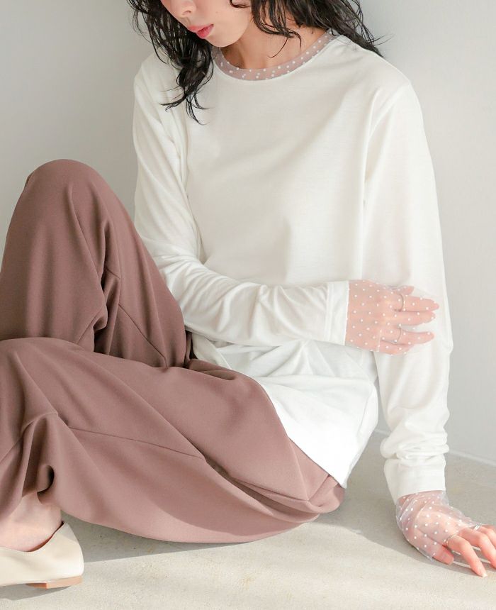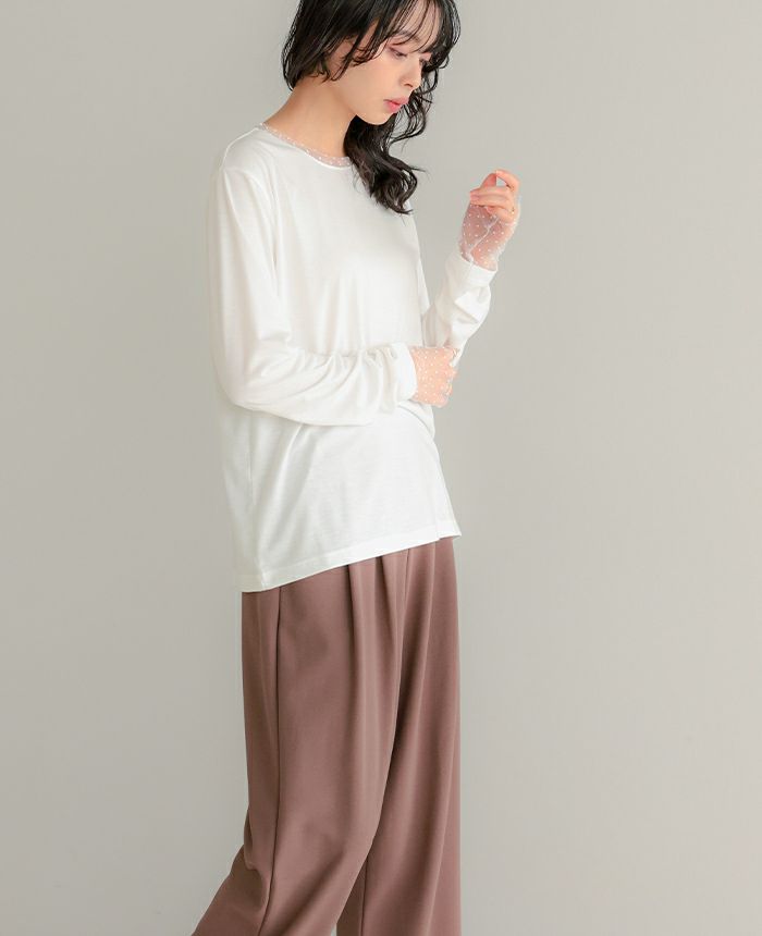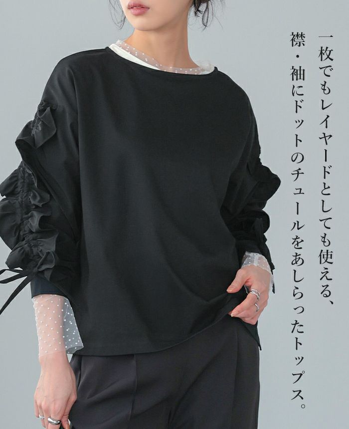 袖ドットチュールカットソー