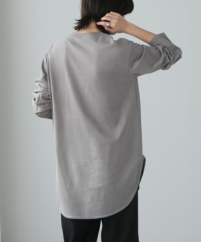 気になる腰回りをしっかりカバーしてくれる、ロング丈の長袖Tシャツ。