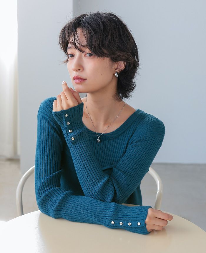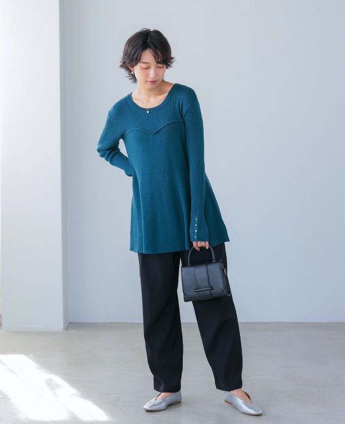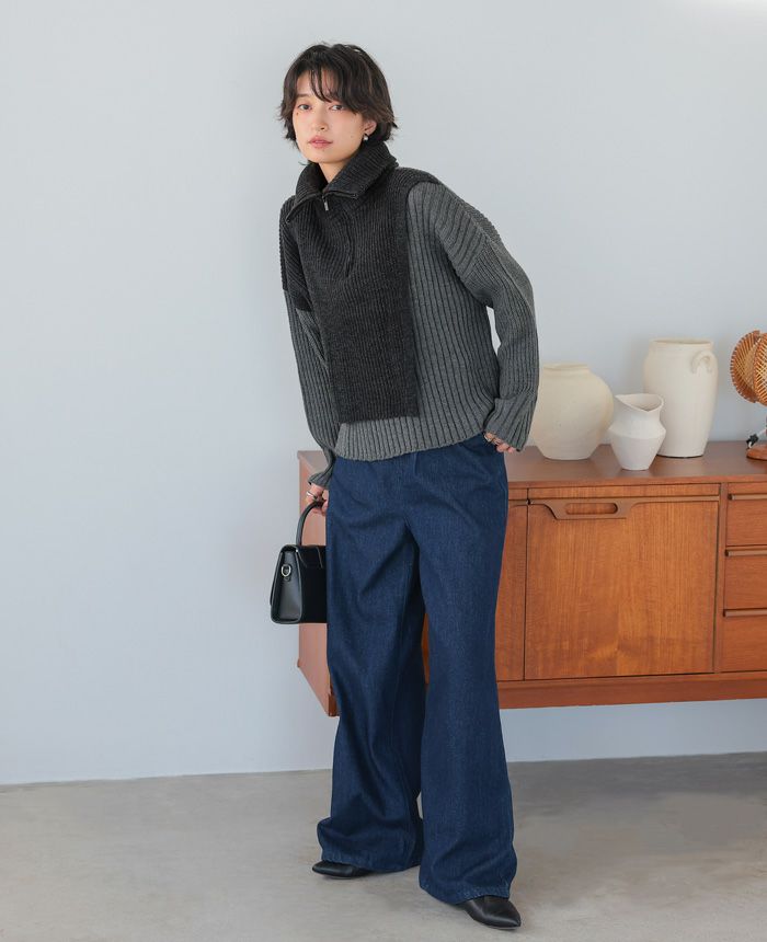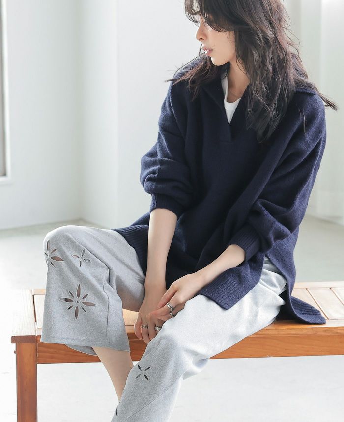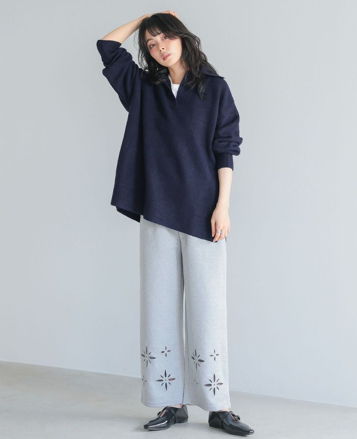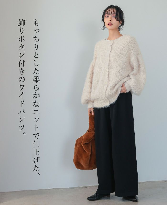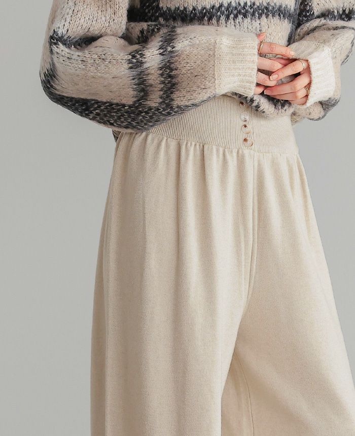 飾りボタンニットワイドパンツ