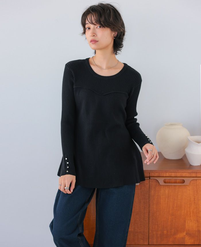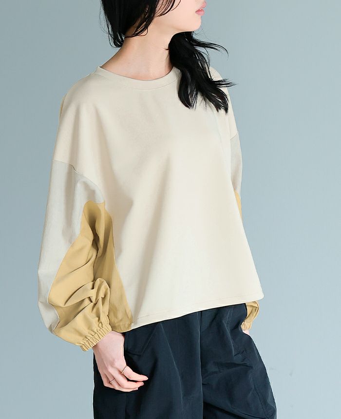 パフスリーブ切替トップス
