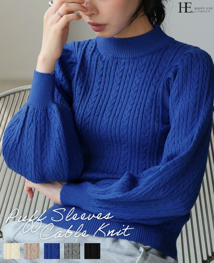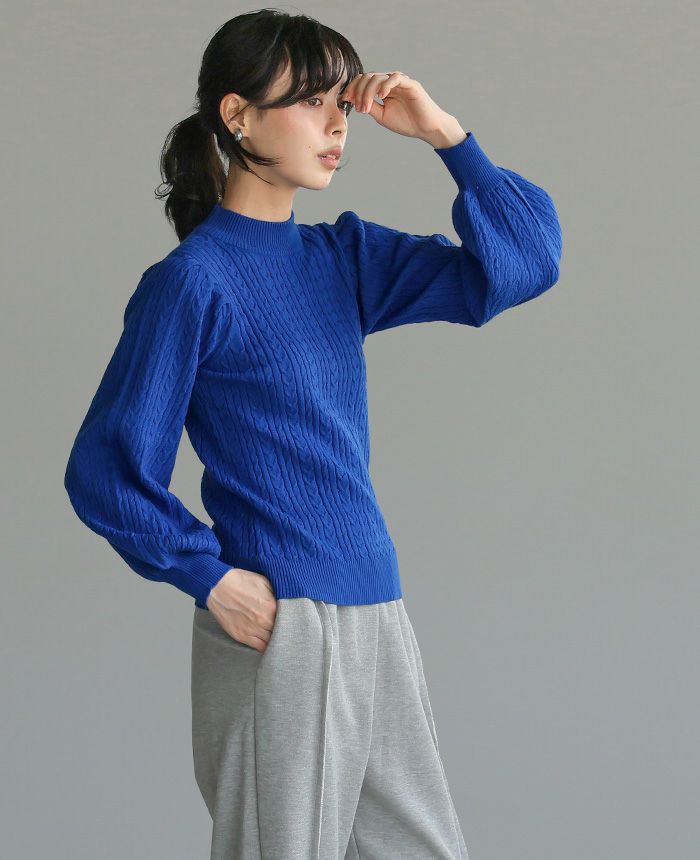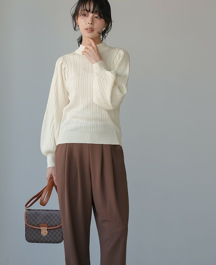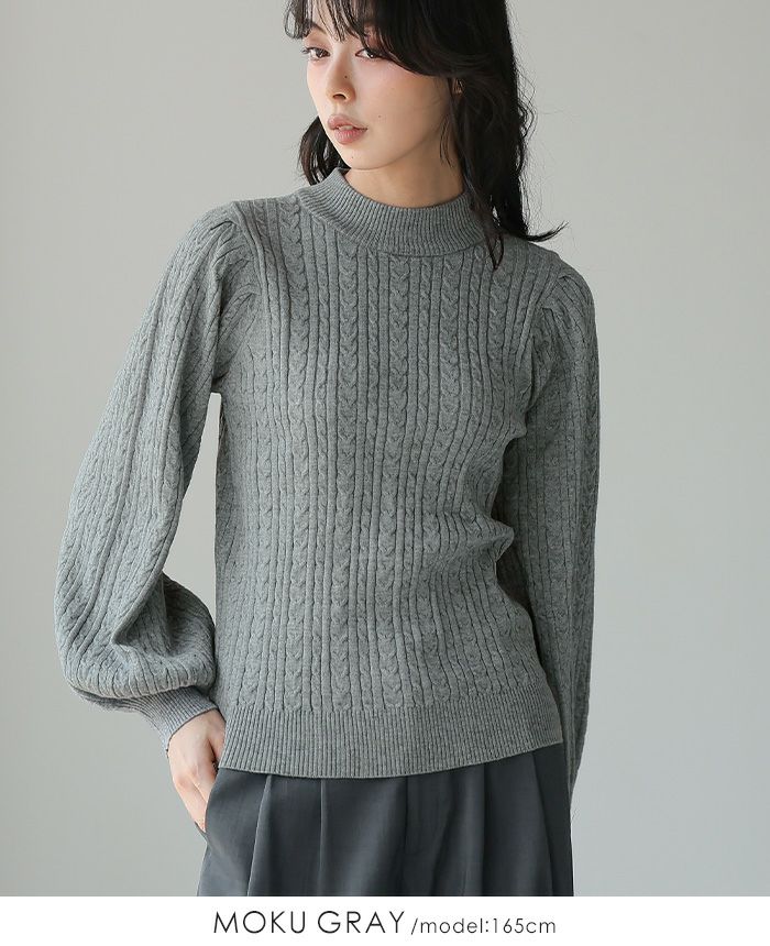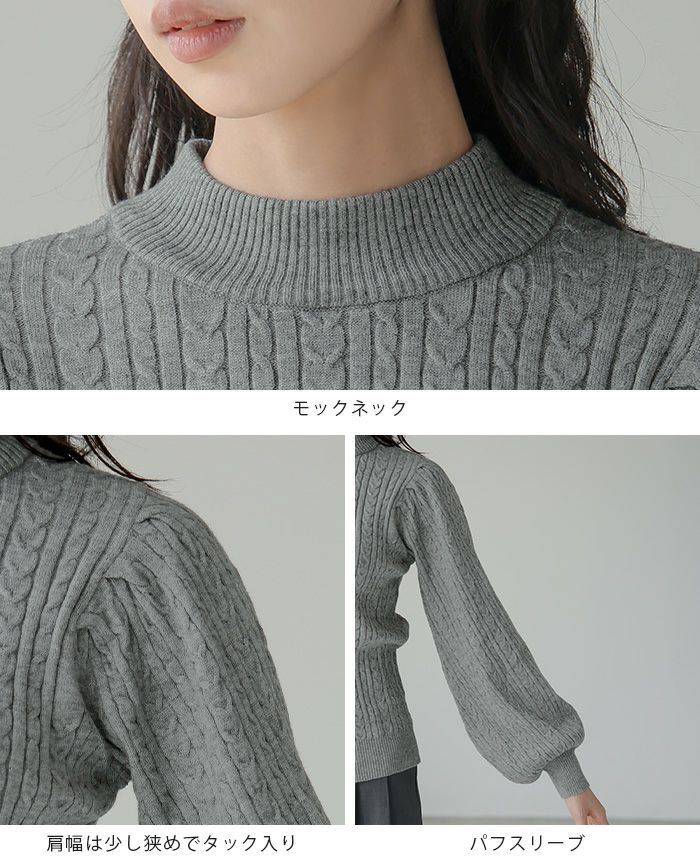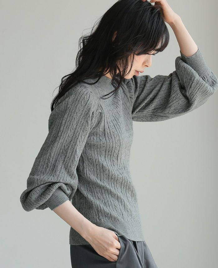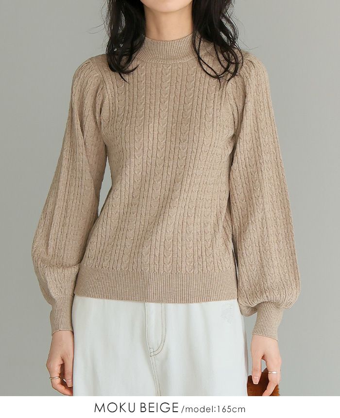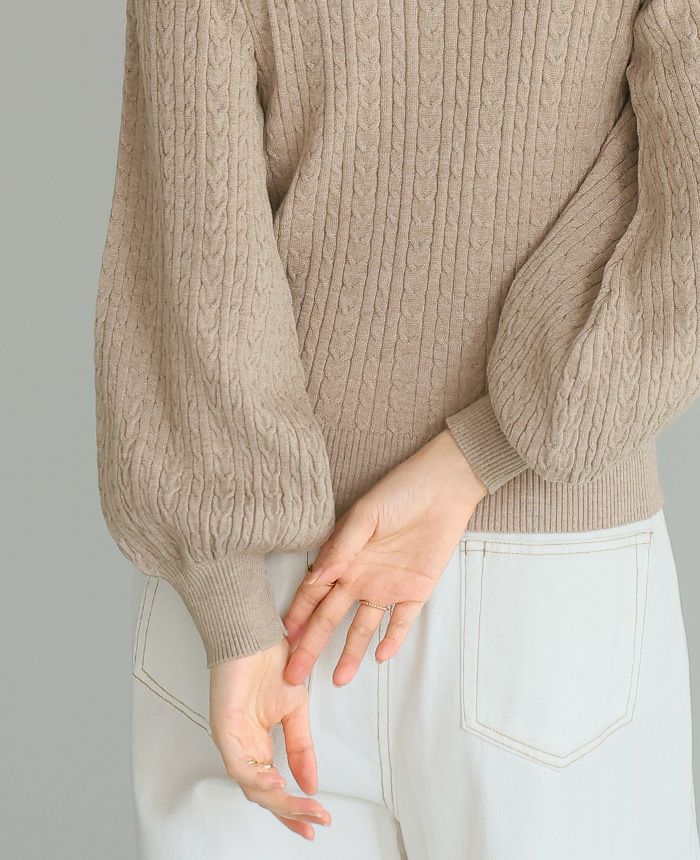 もちもち柄編みパフ袖ニット