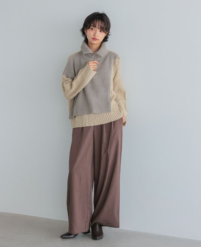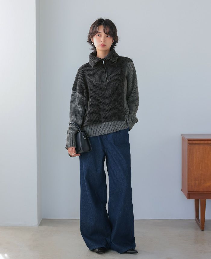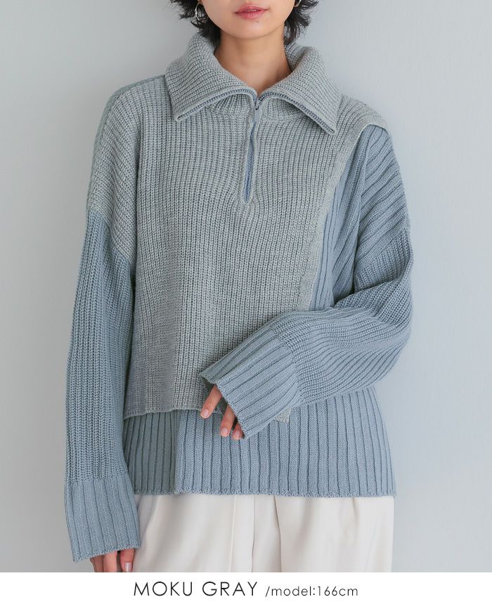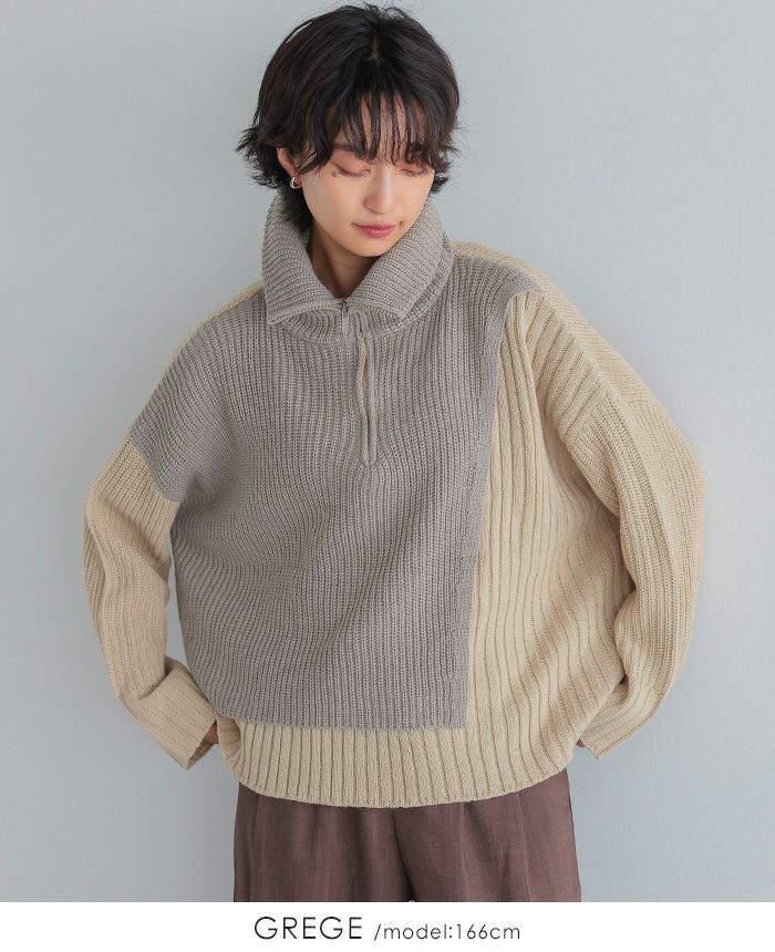 配色ハーフジップニット