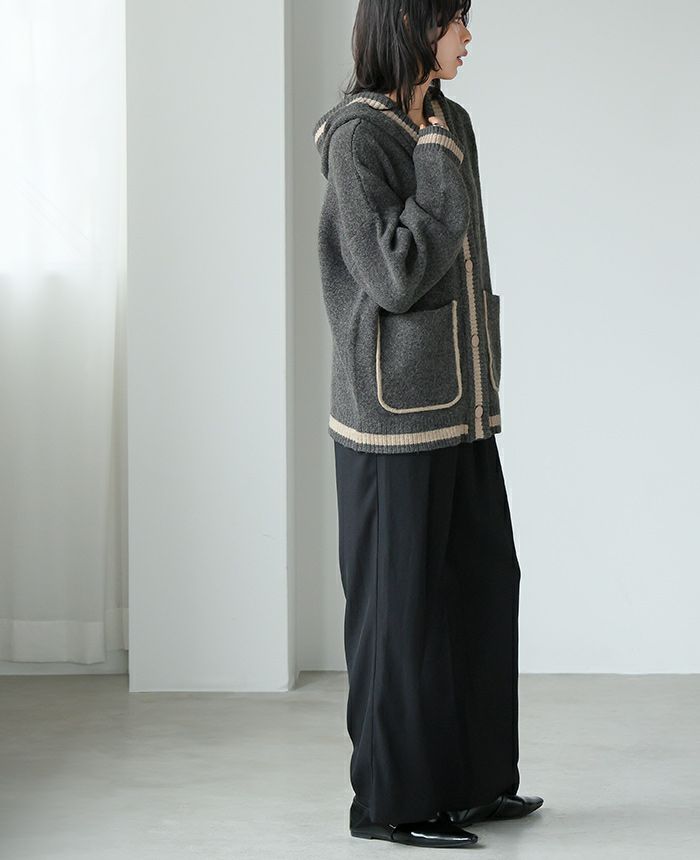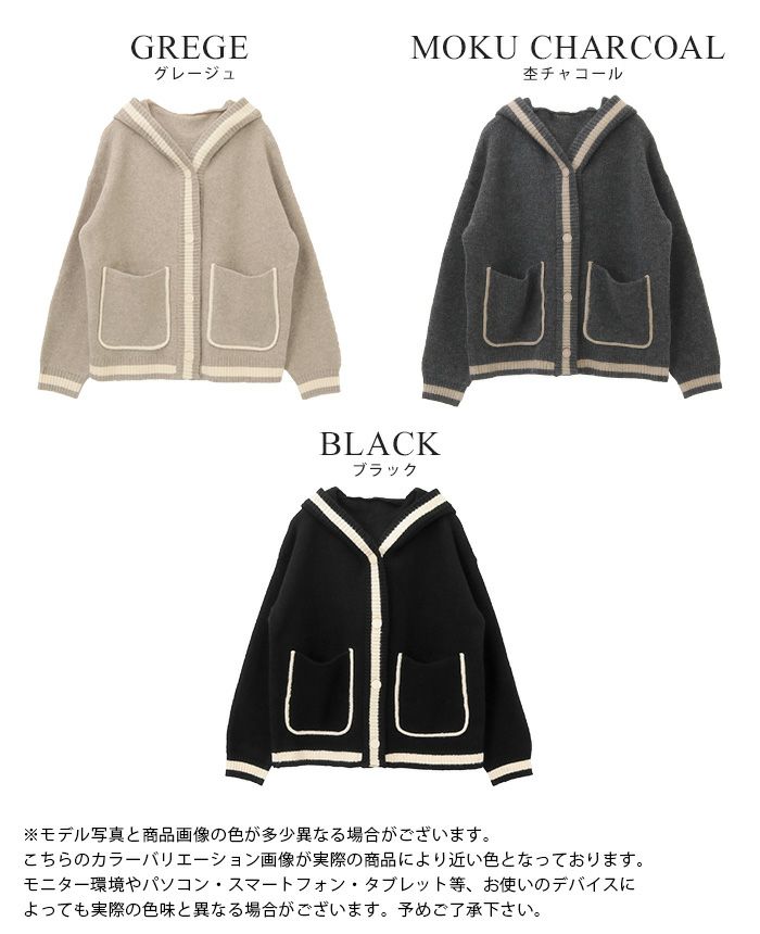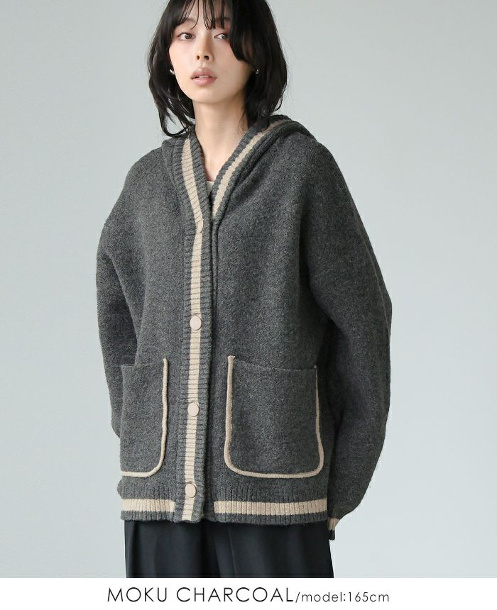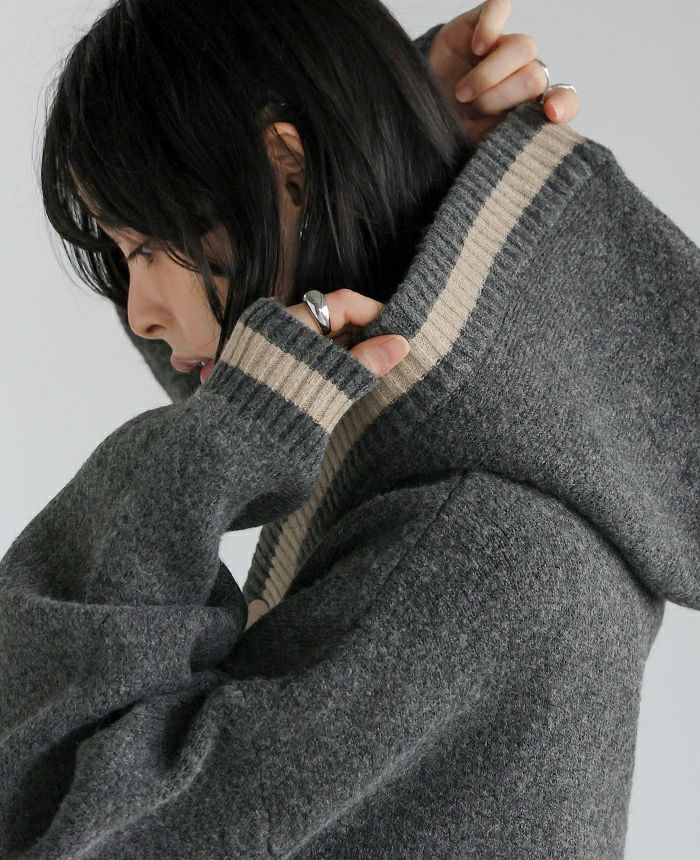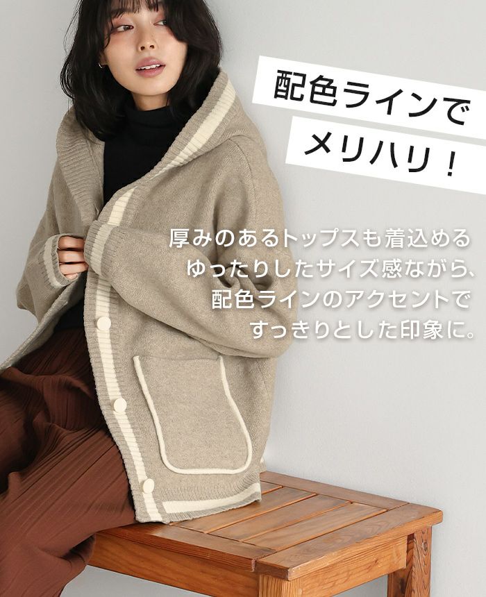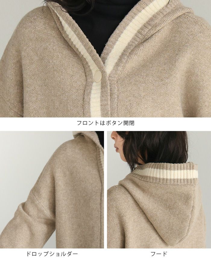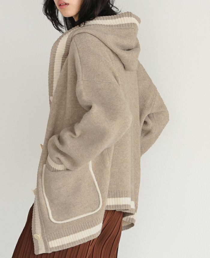 配色ニットパーカーカーディガン