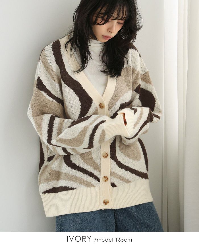 ジャガード編み起毛カーディガン