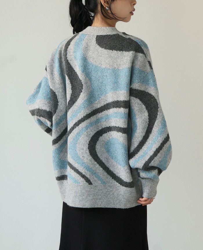 配色オーバーサイズニット