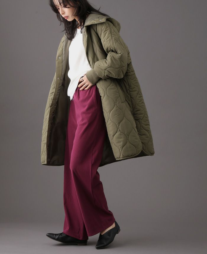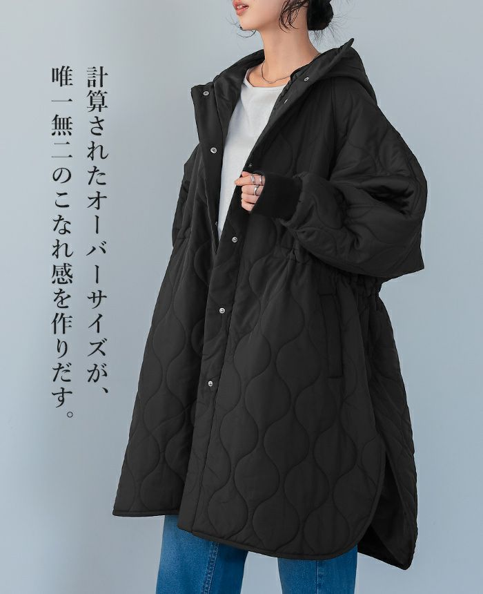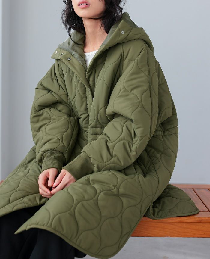 キルトフード付きコート