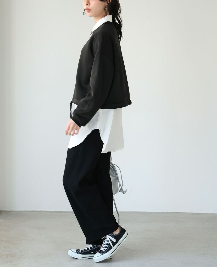 ペプラムギャザーブラウス風カットソー
