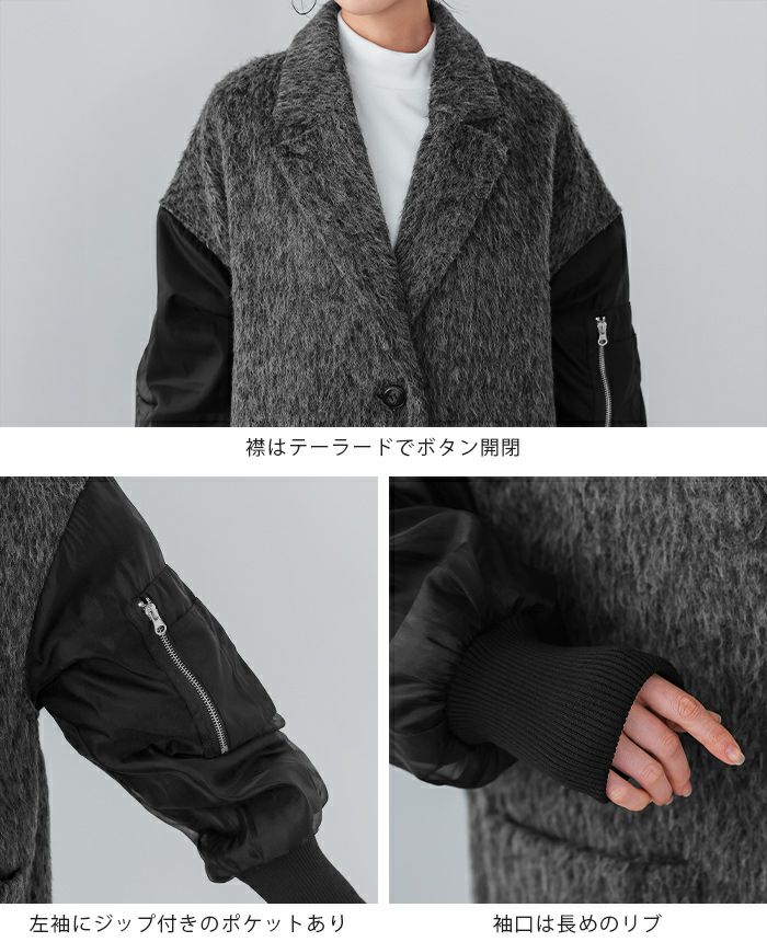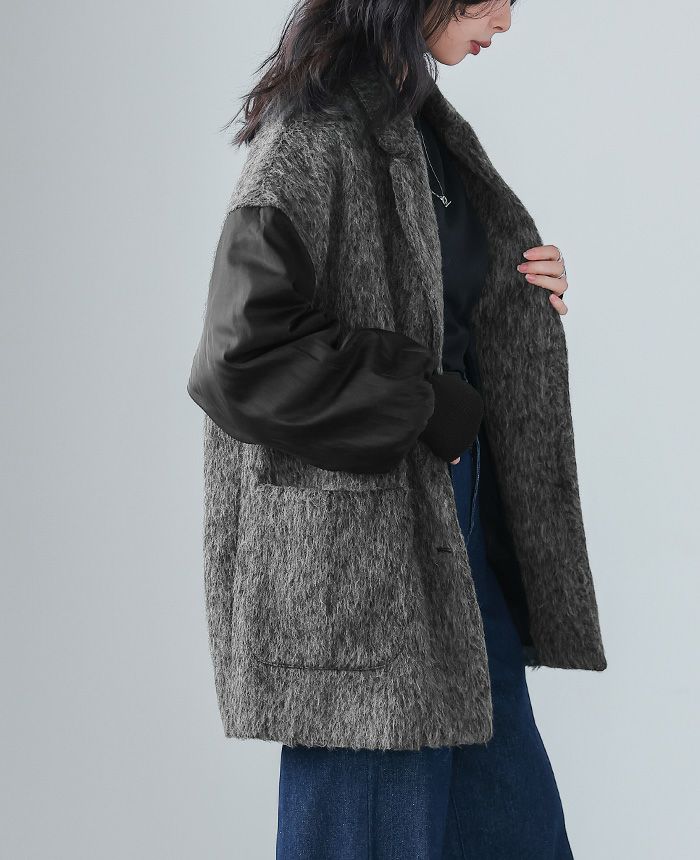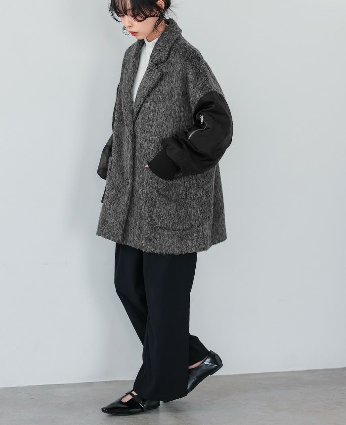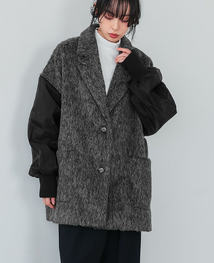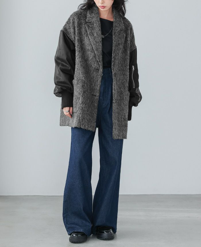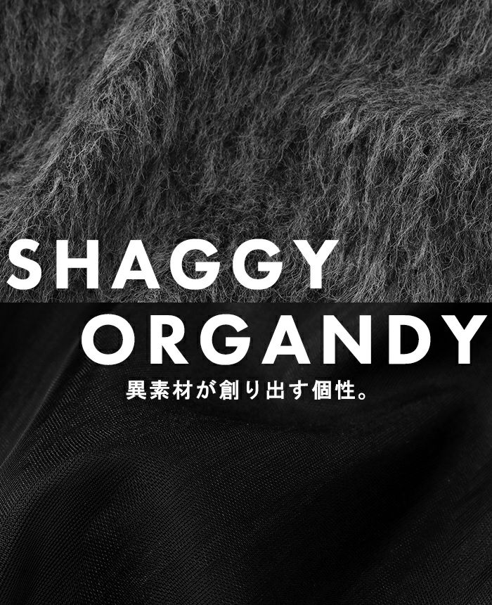シャギー×オーガンジー異素材MIXコート