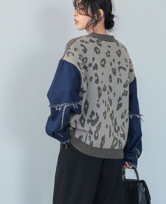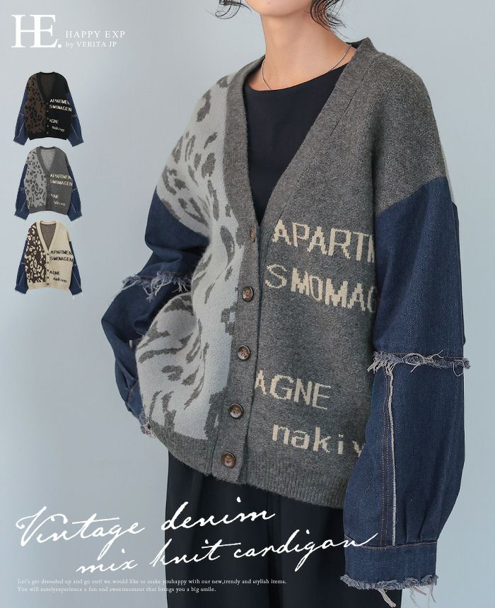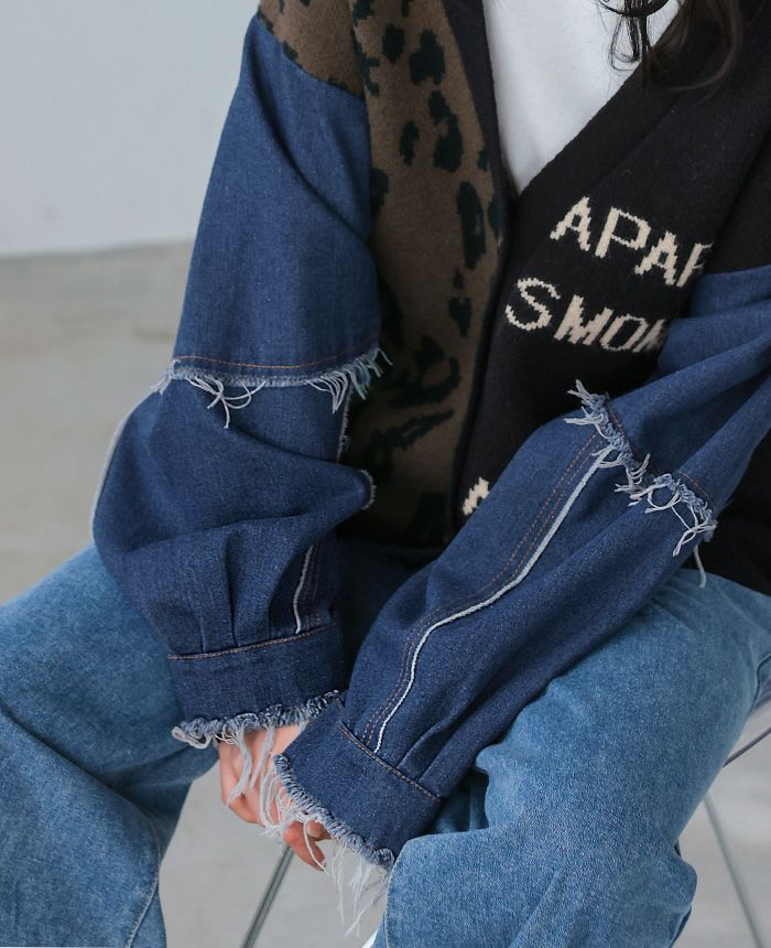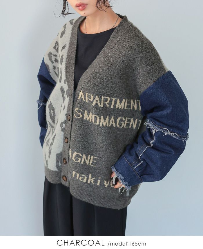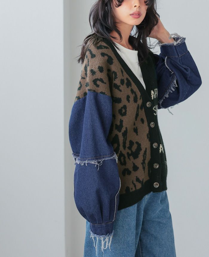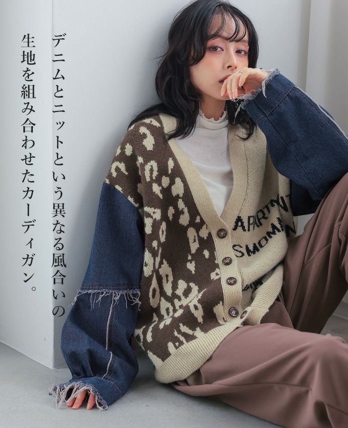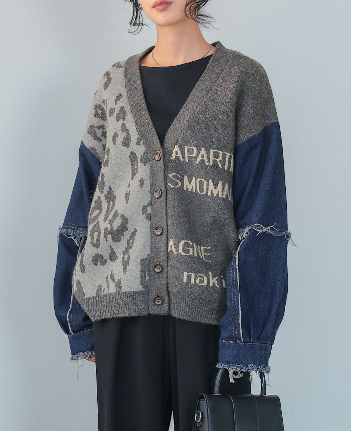 デニムMIXデザインニットカーディガン