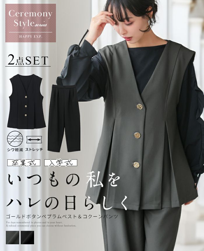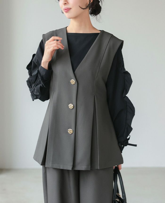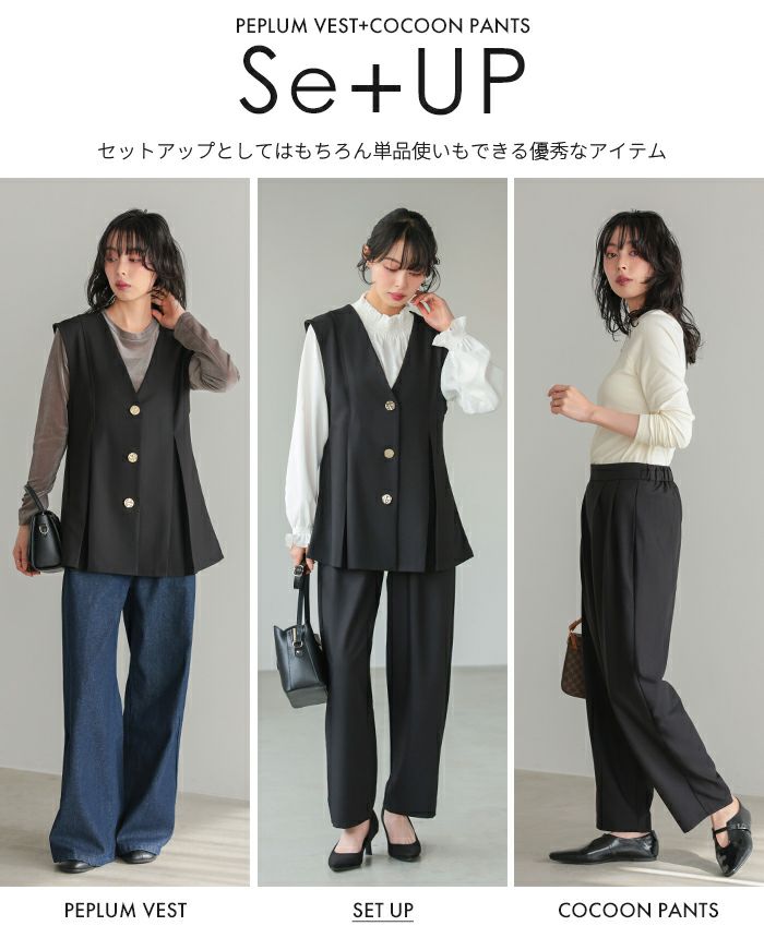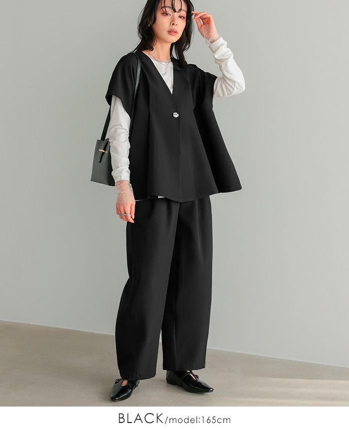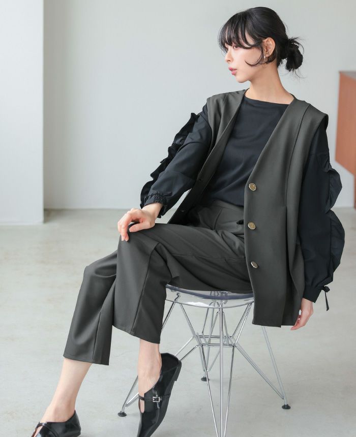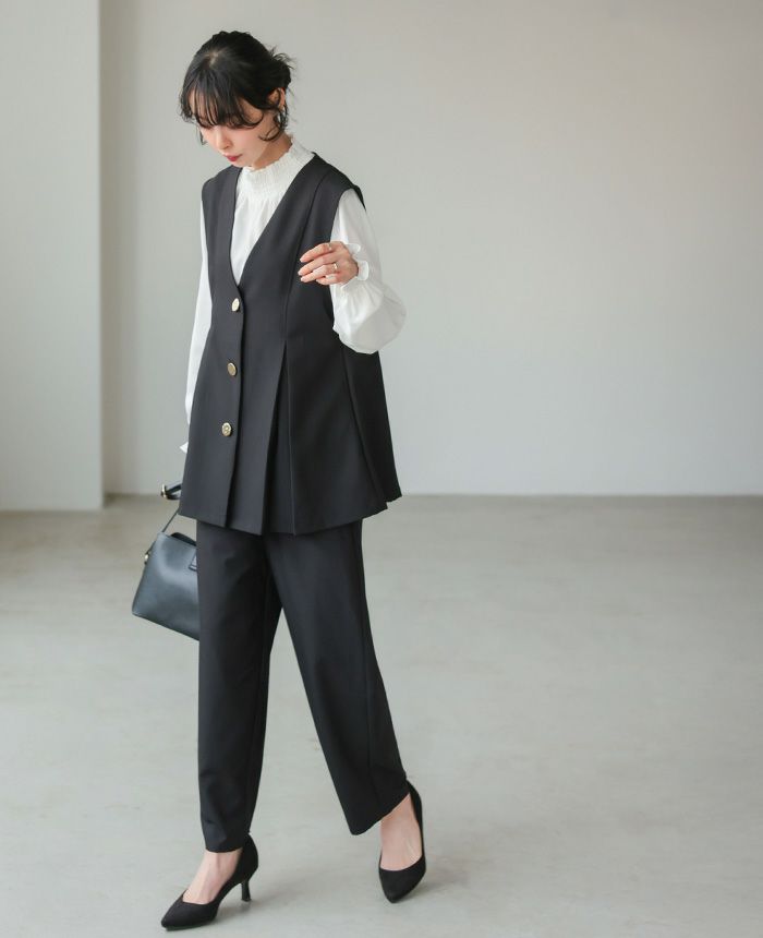 ゴールドボタンベスト&コクーンパンツセットアップ