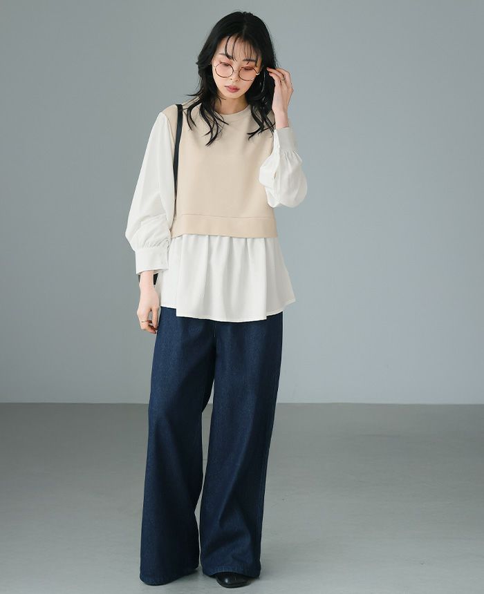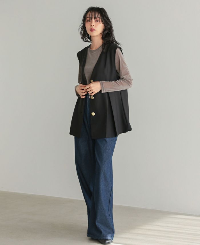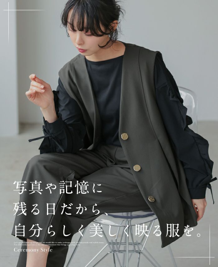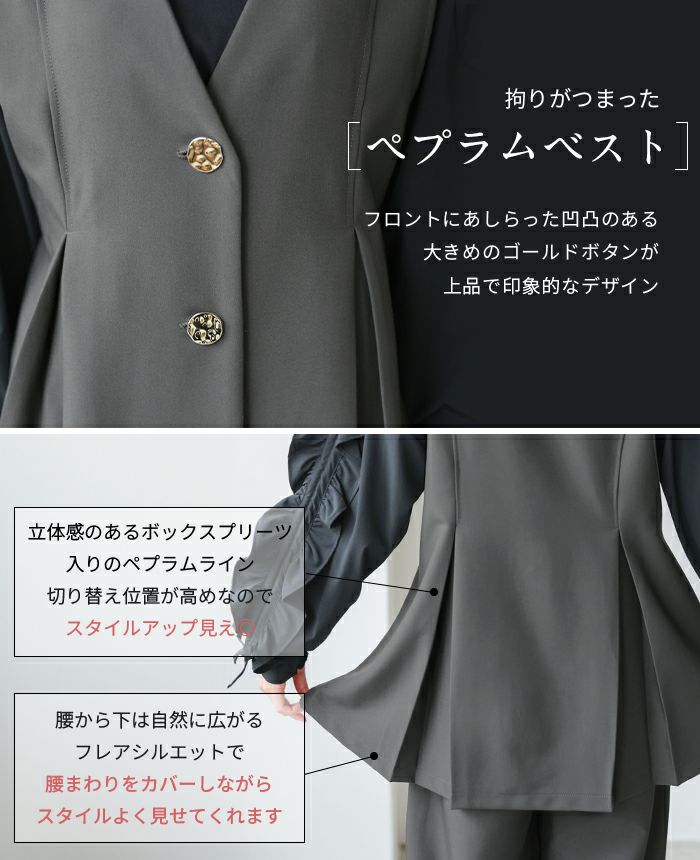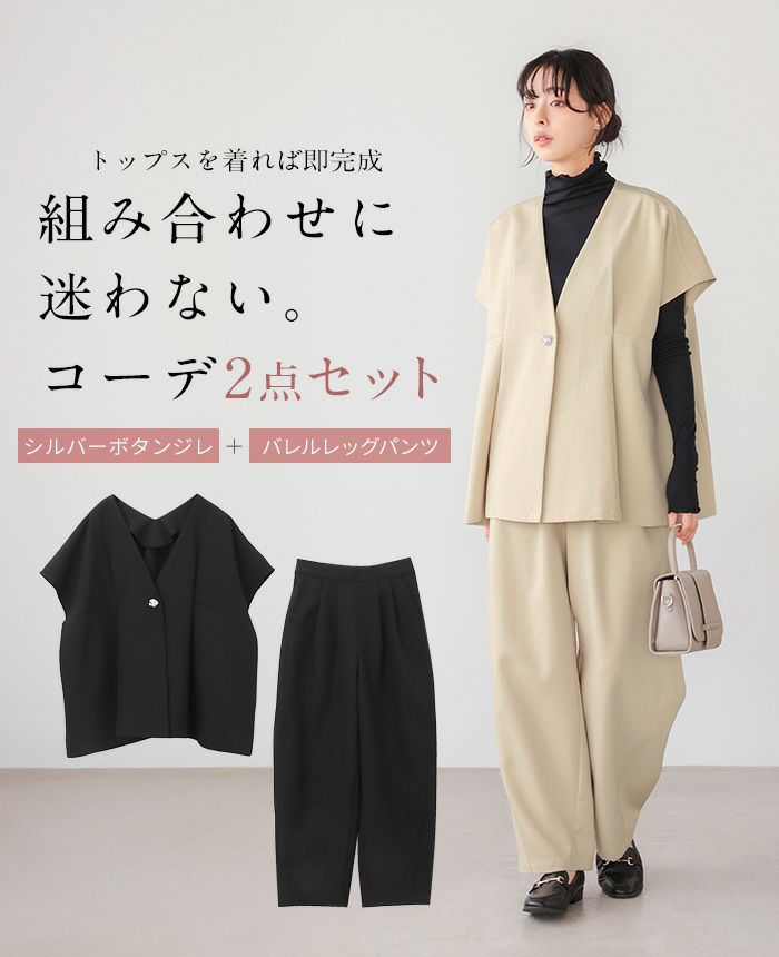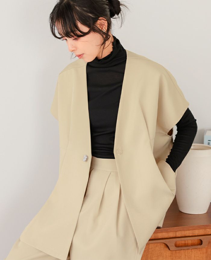 ゴールドボタンベスト&コクーンパンツセットアップ