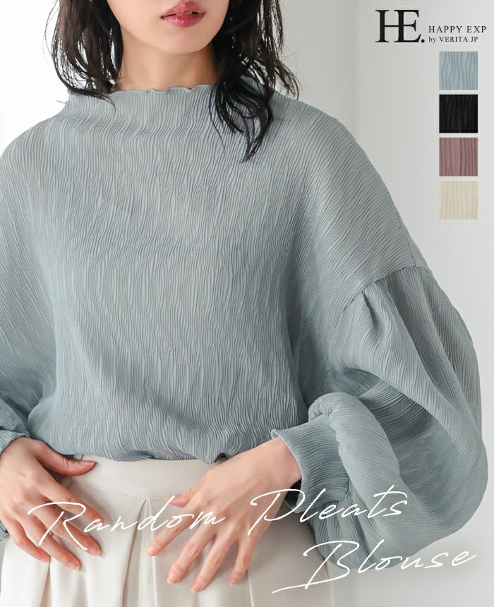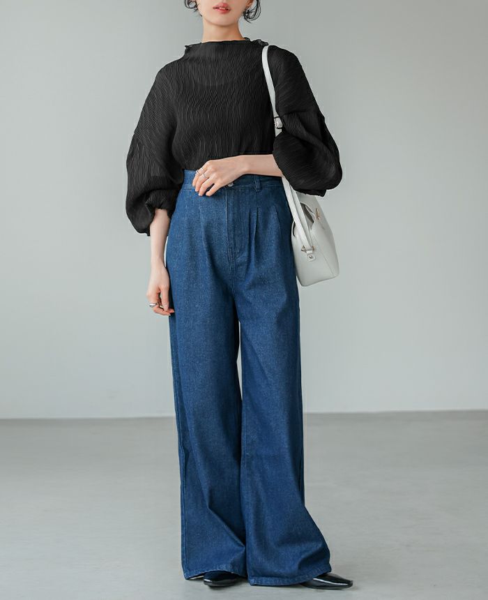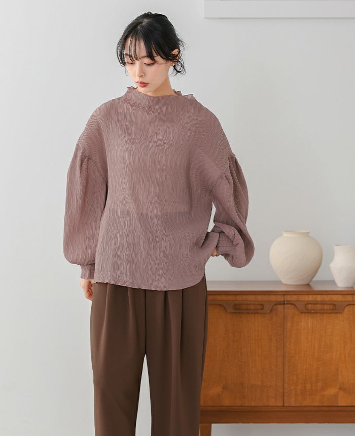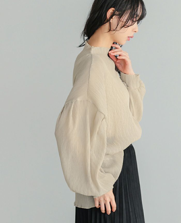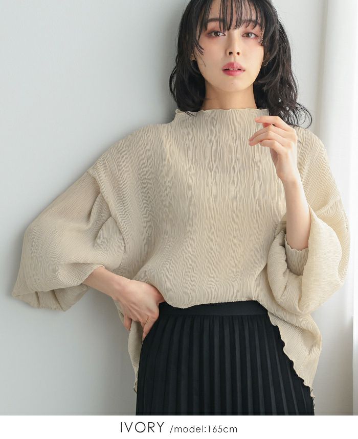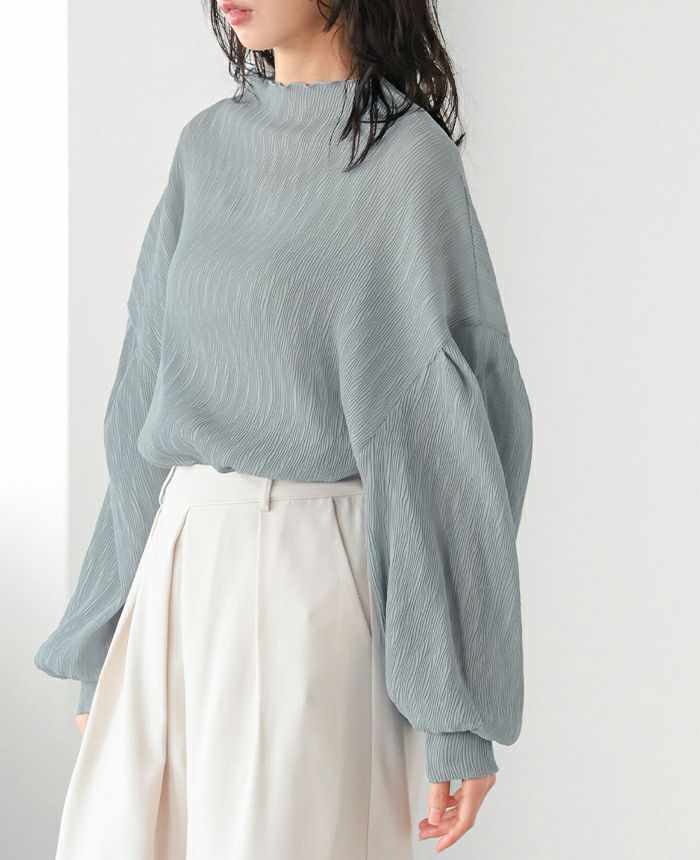 ランダムプリーツボトルネックトップス