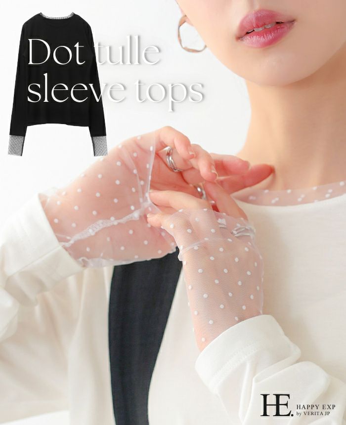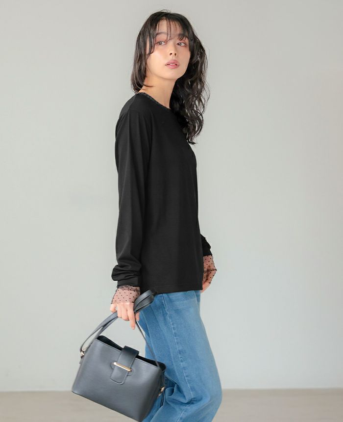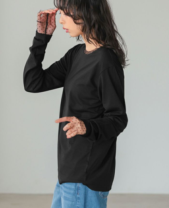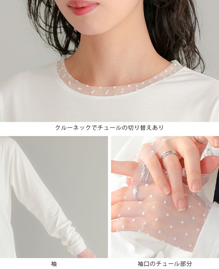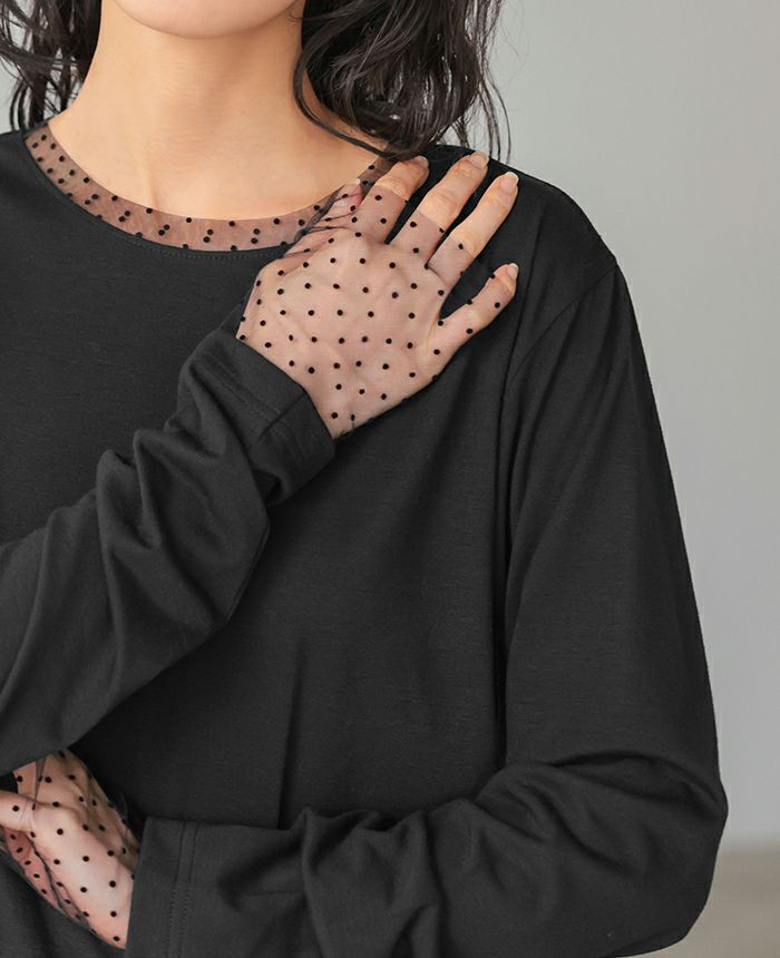 袖ドットチュールカットソー