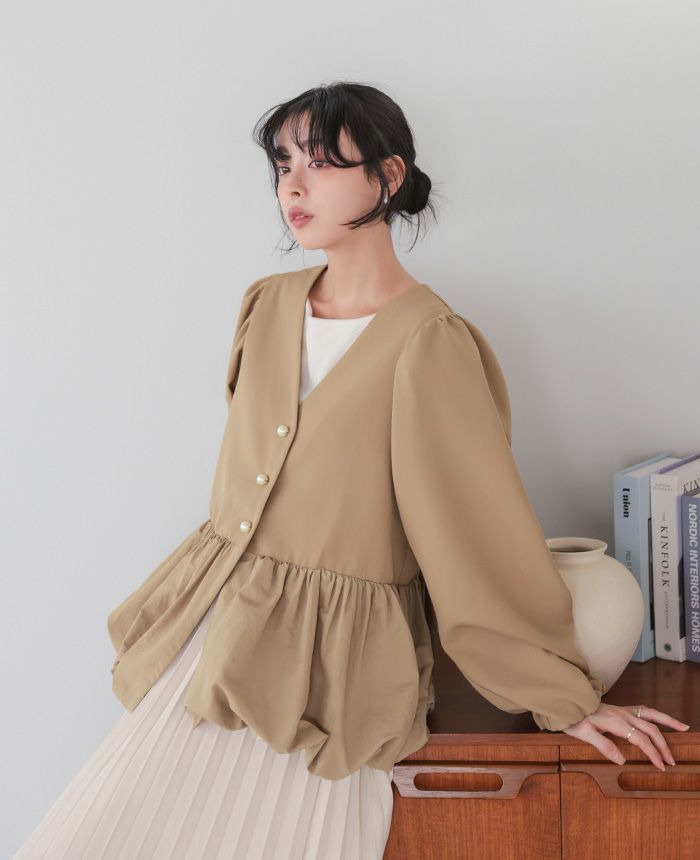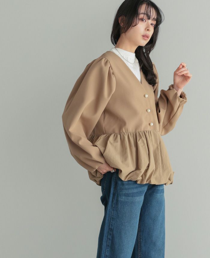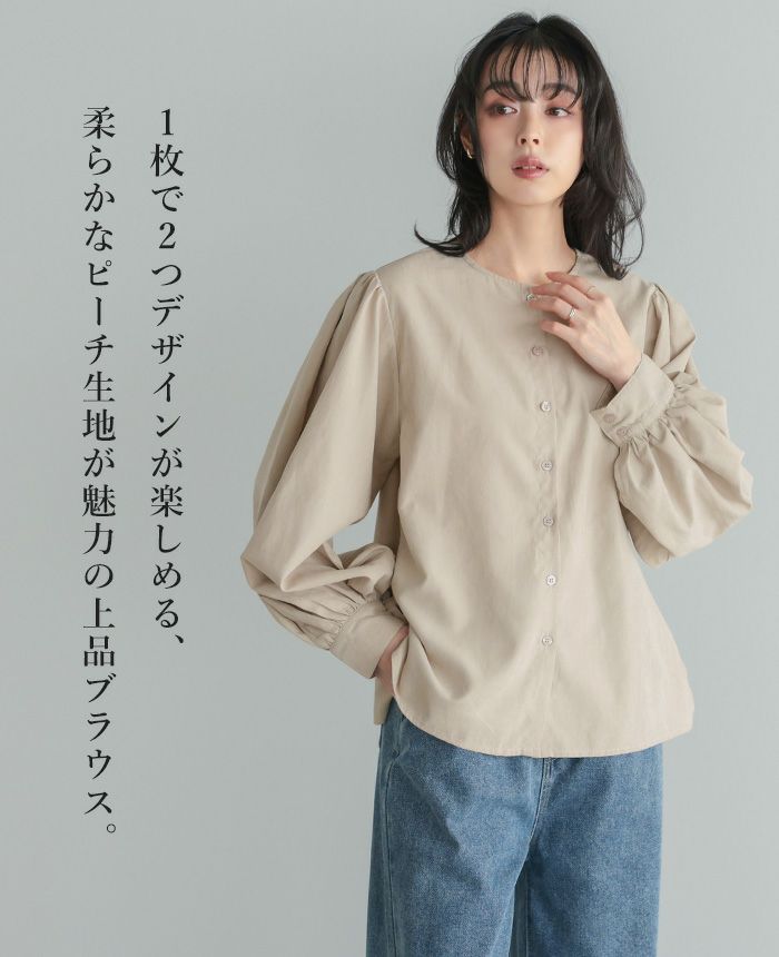 ピーチボリュームスリーブブラウス