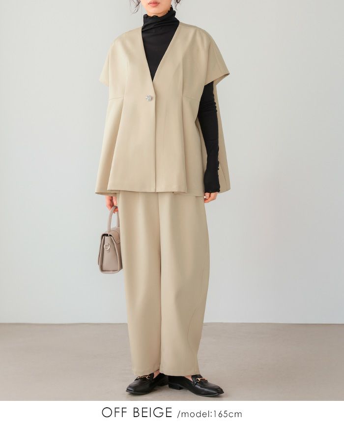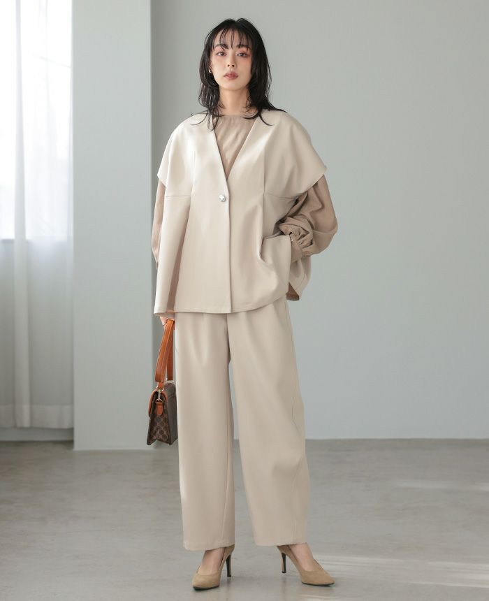 ワンボタンジレ バレルレッグパンツセットアップ