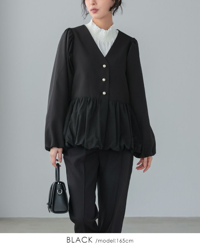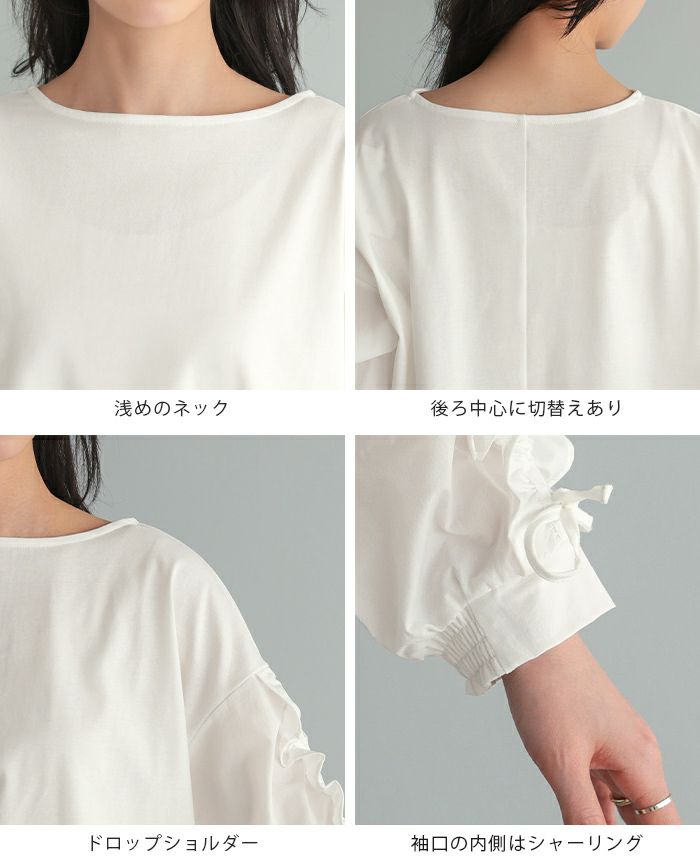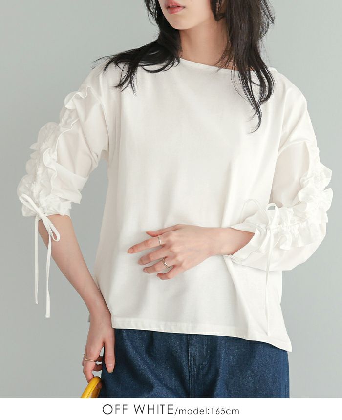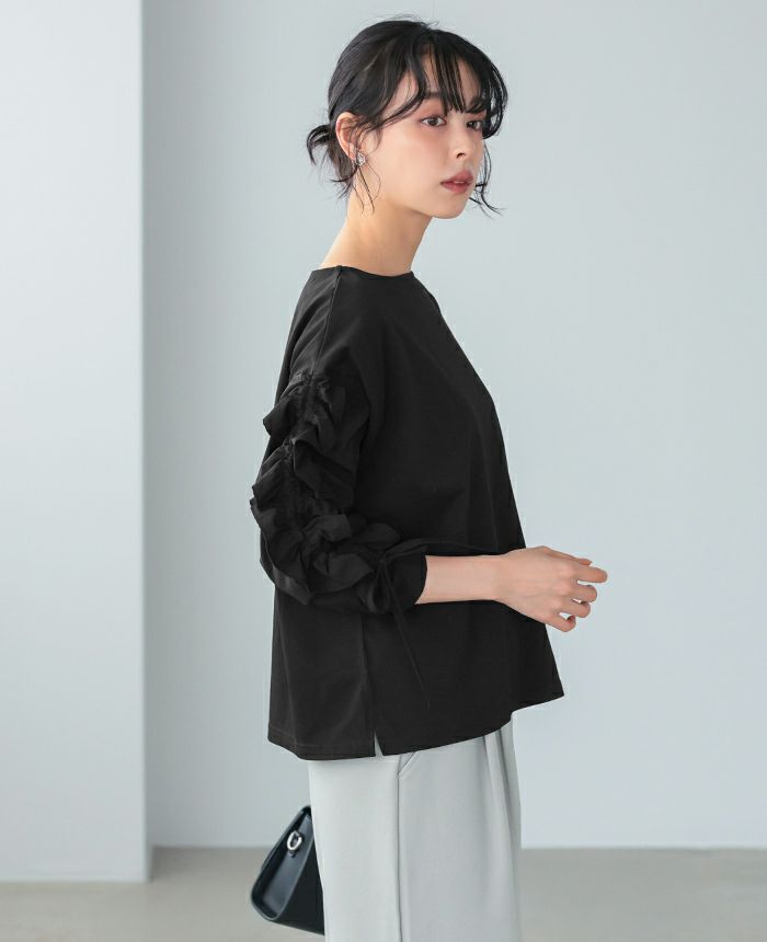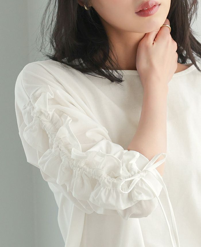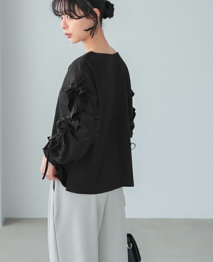 袖シャーリングフリルトップス