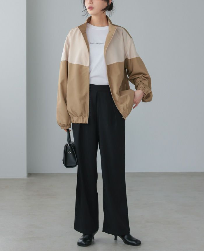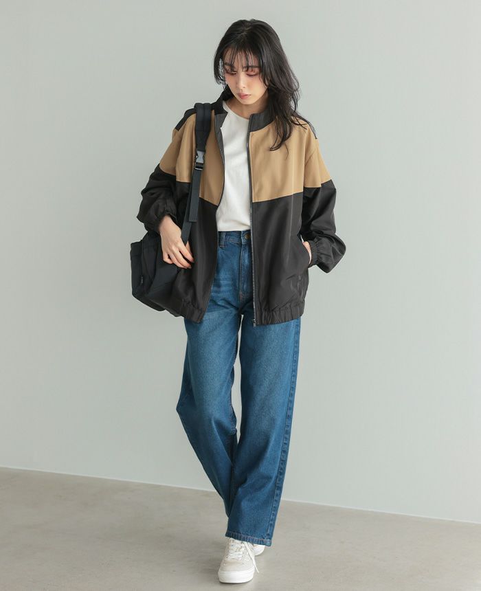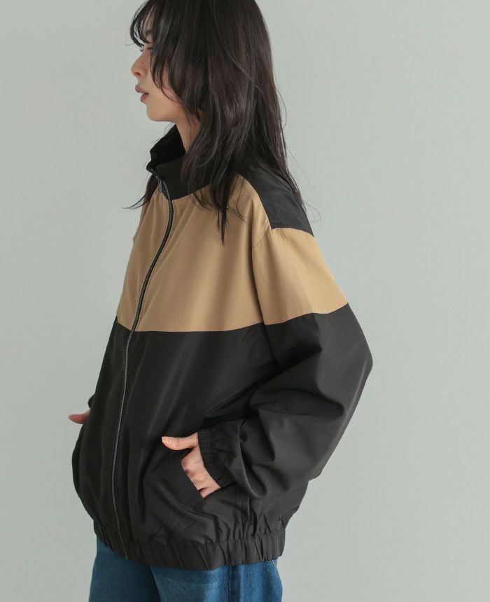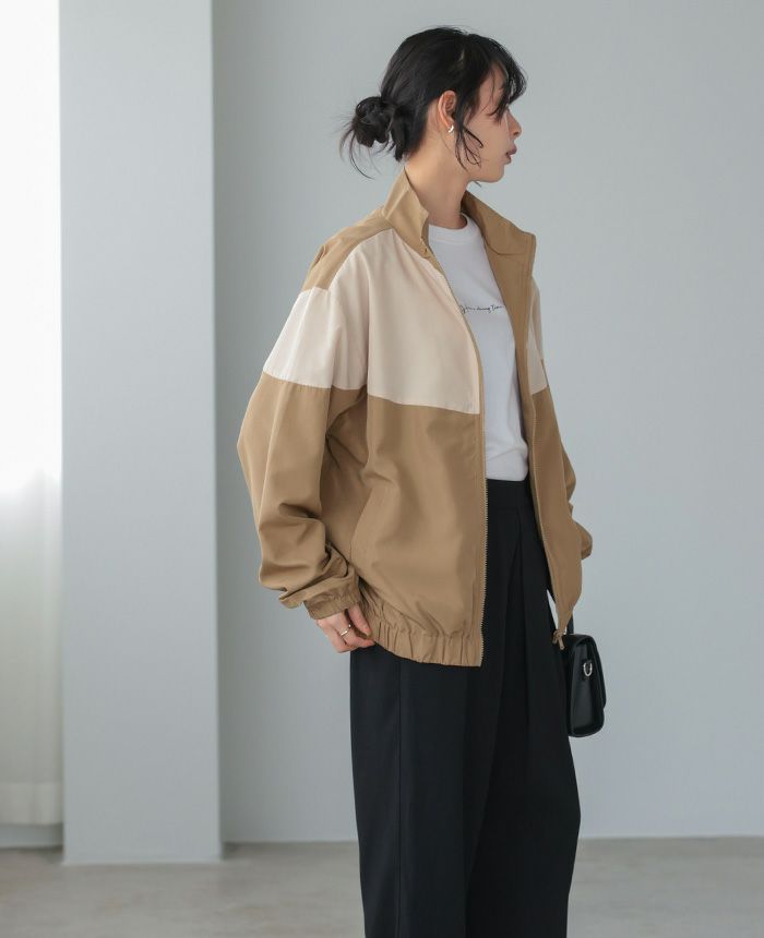 配色スタンドカラージップアップブルゾン