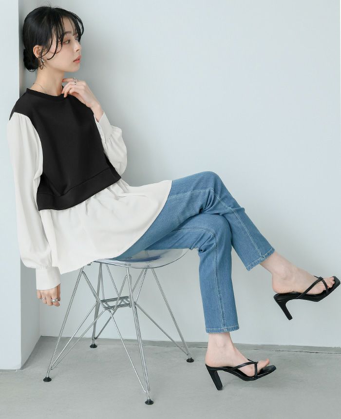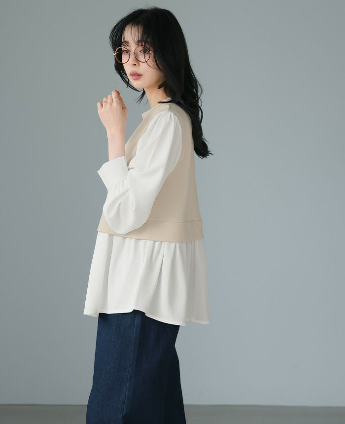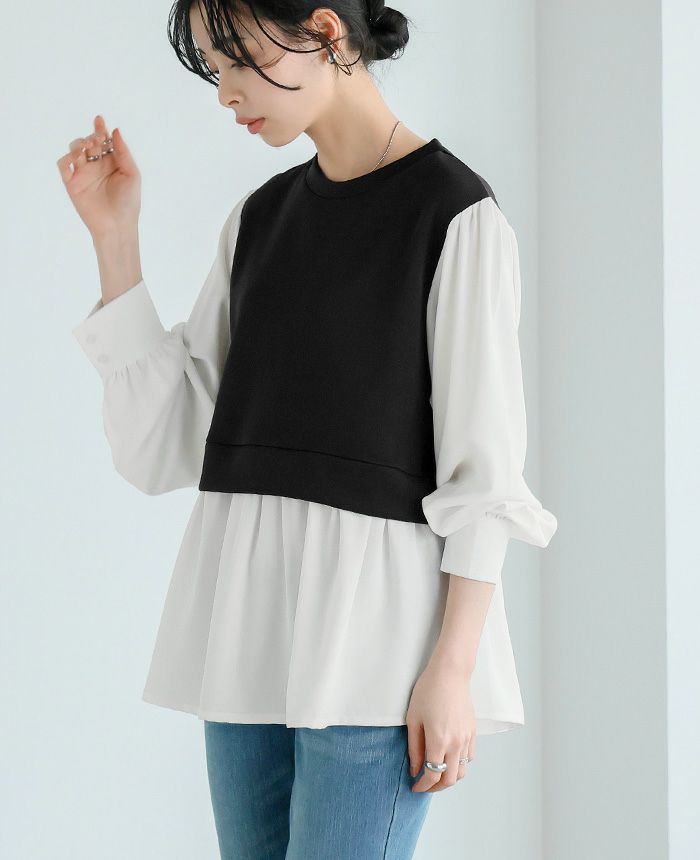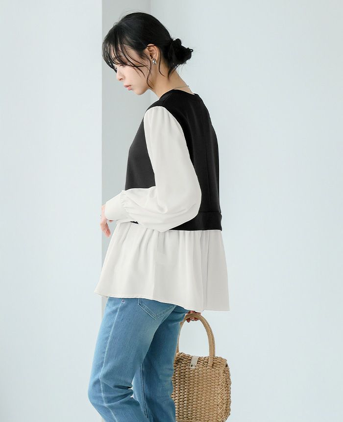 配色ドッキングブラウス