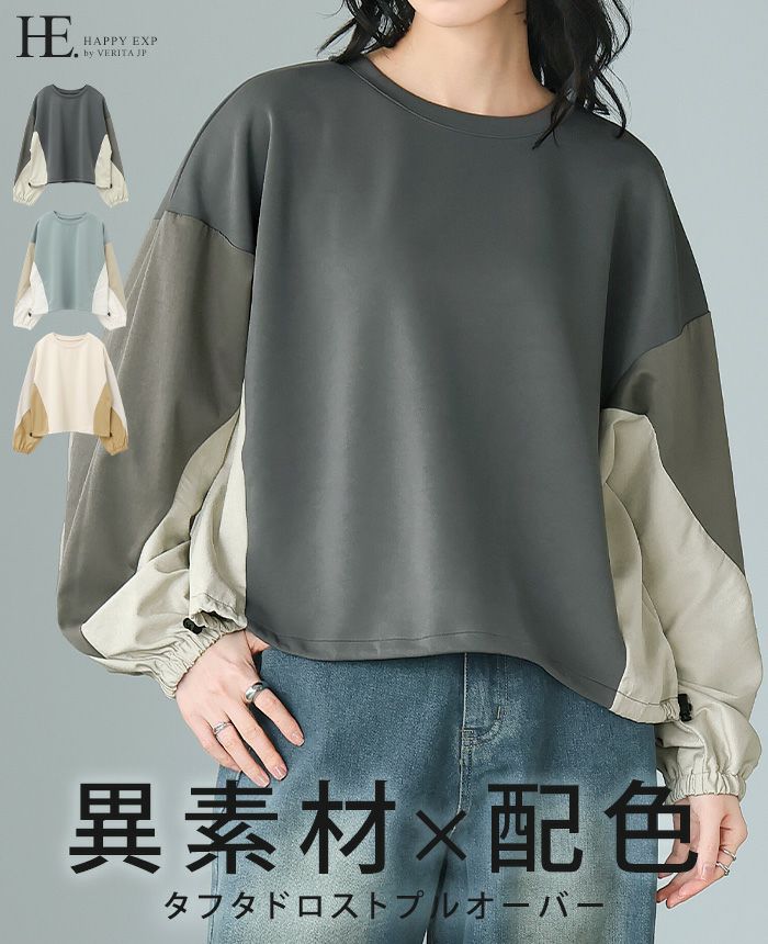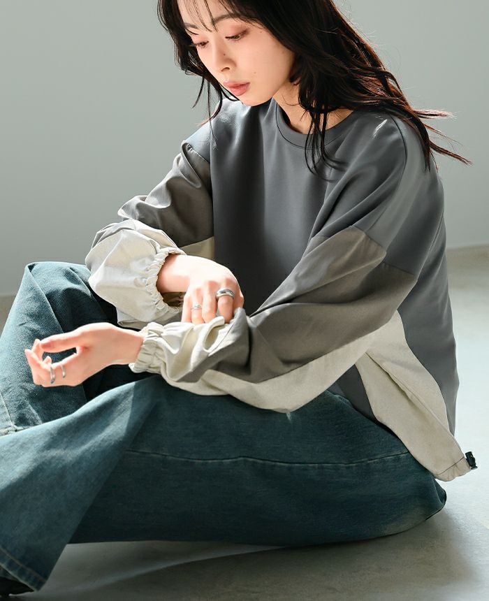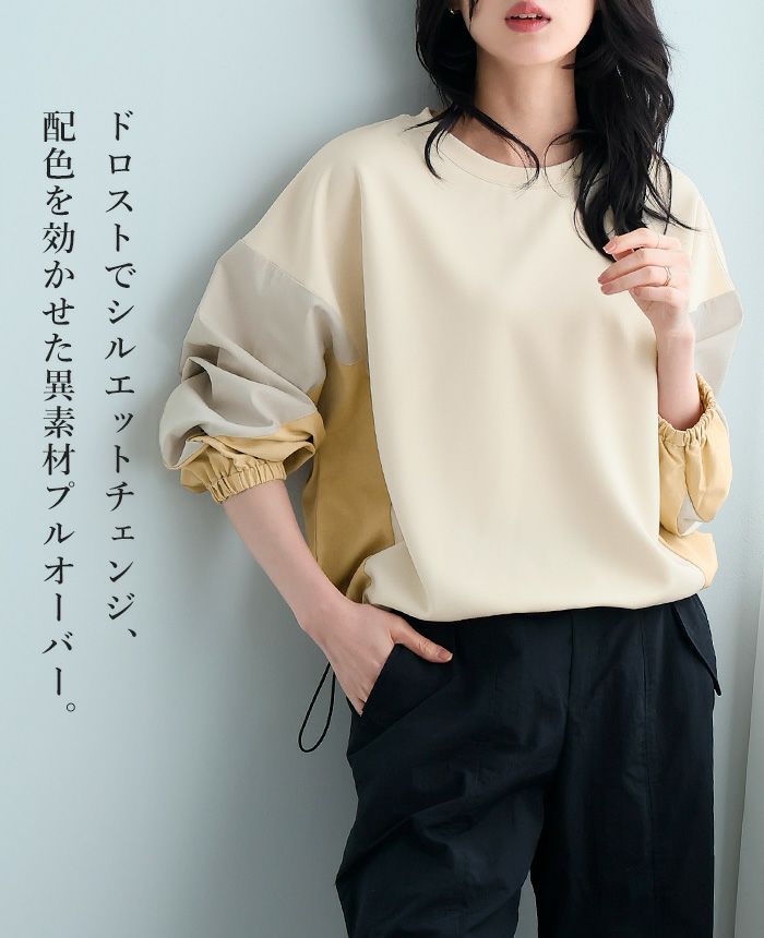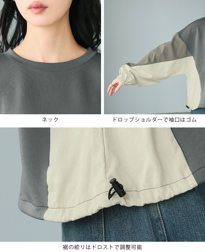タフタ配色使いドロストプルオーバー