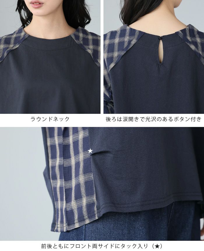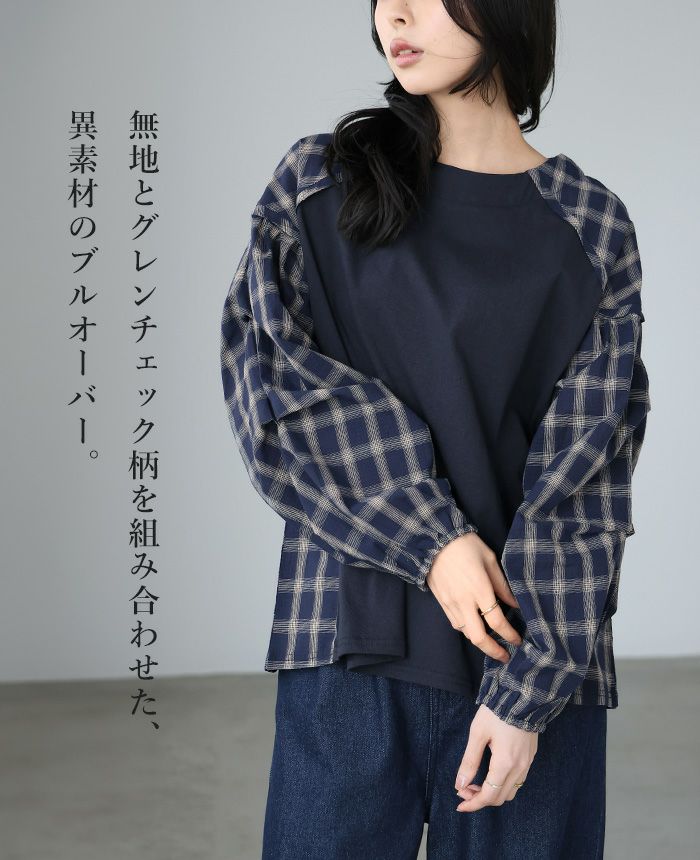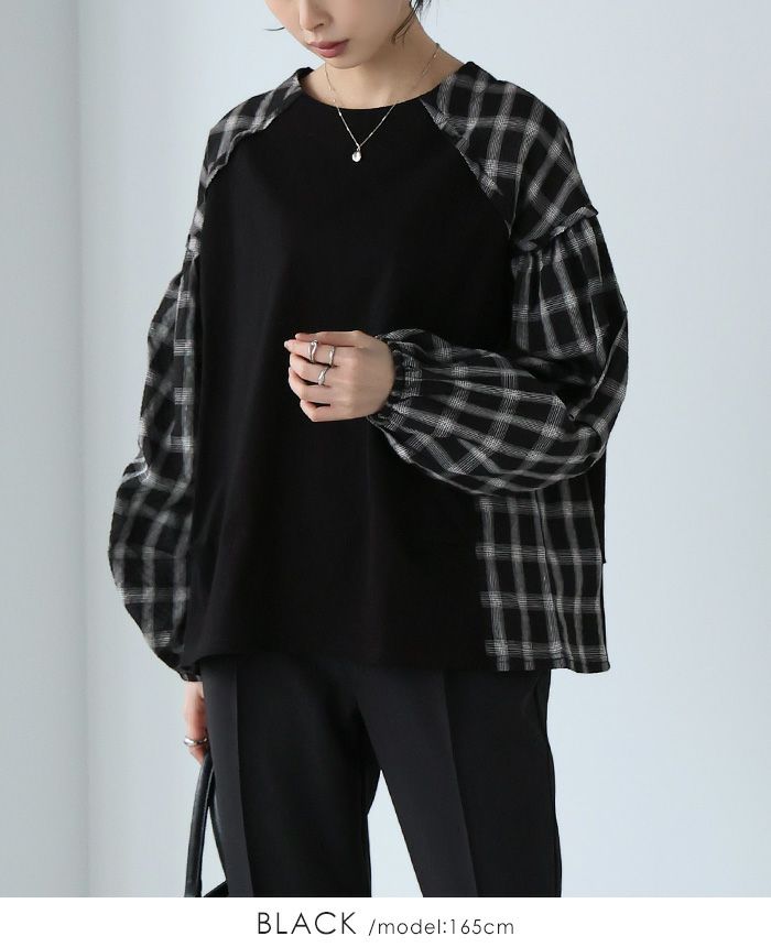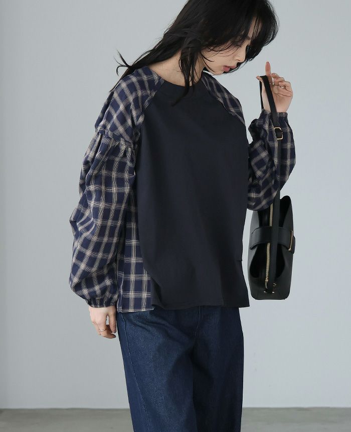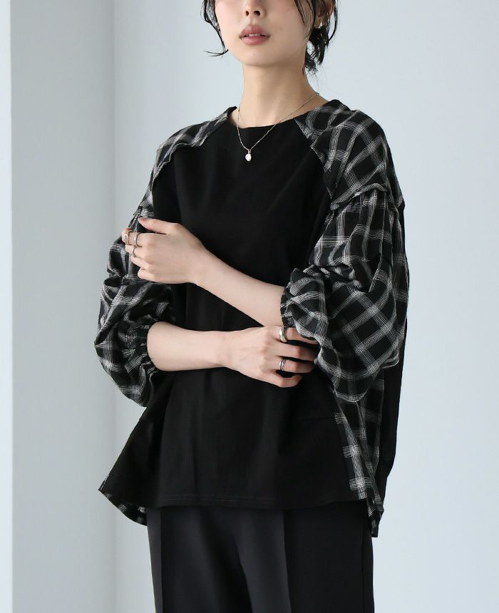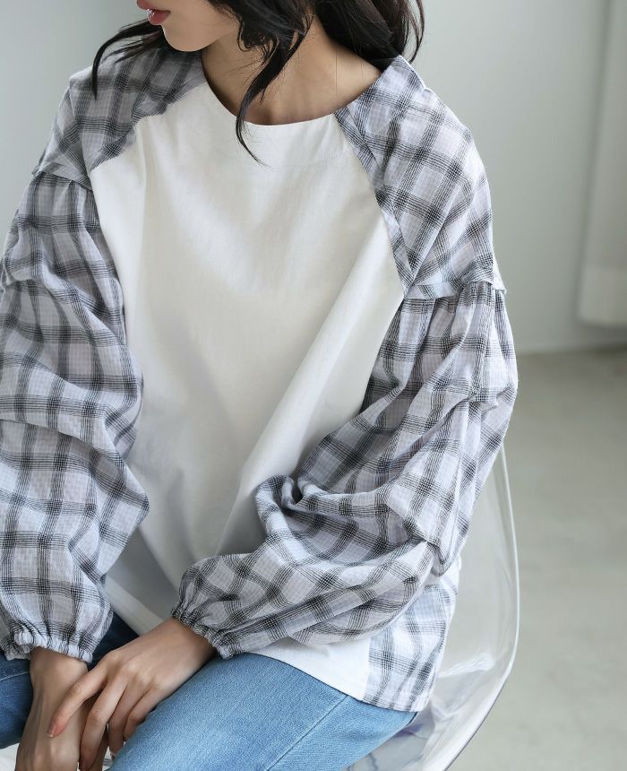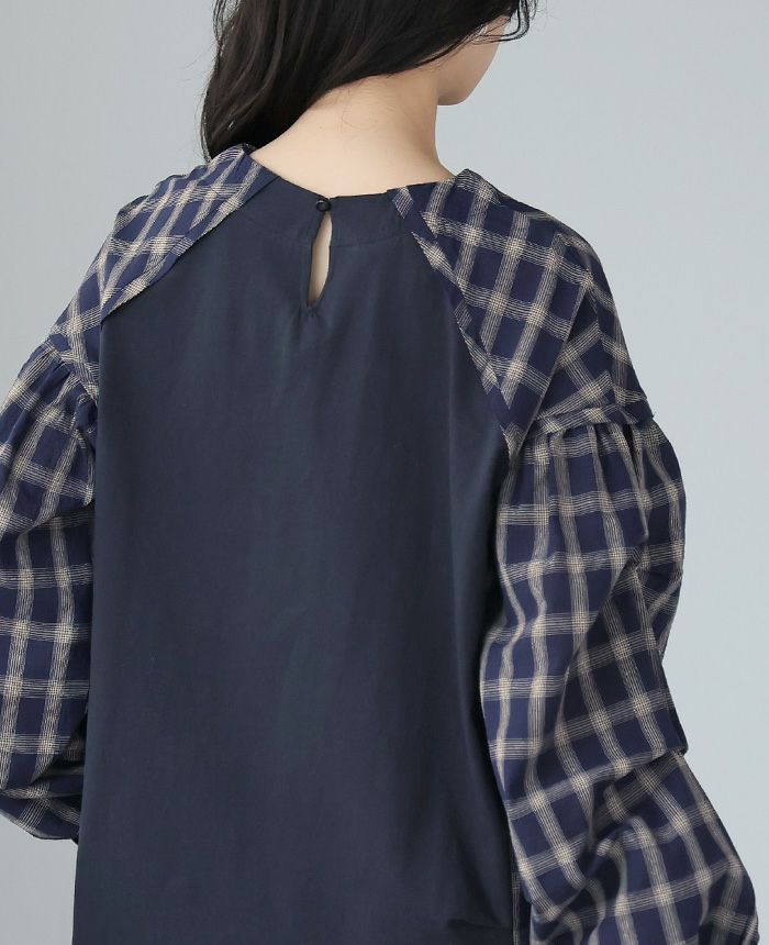 チェック柄タック袖プルオーバー
