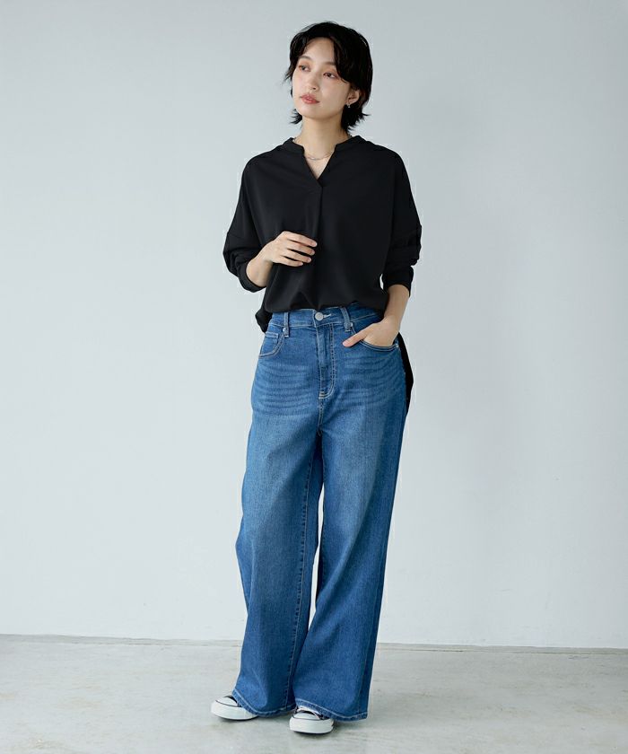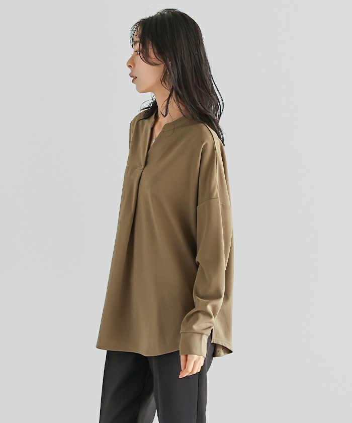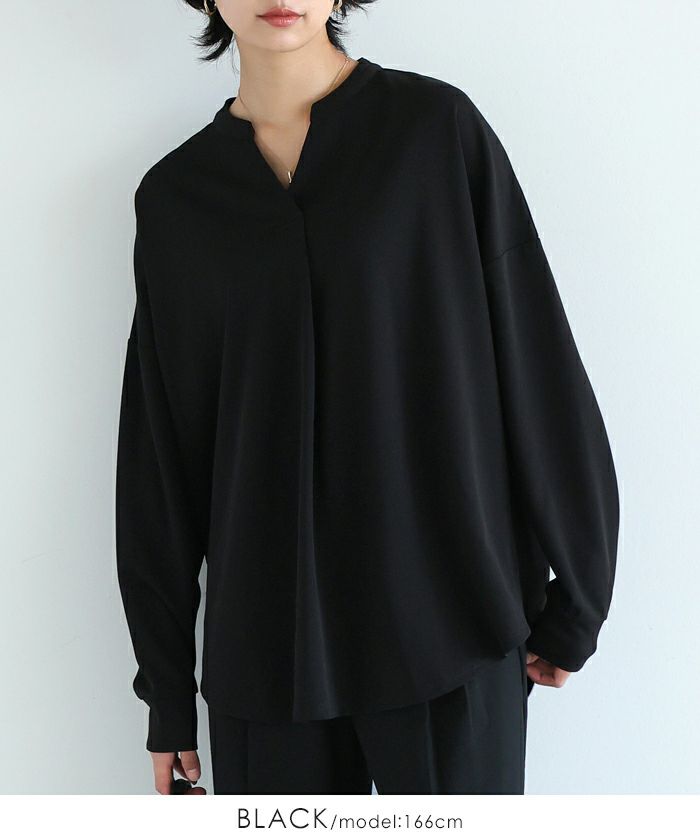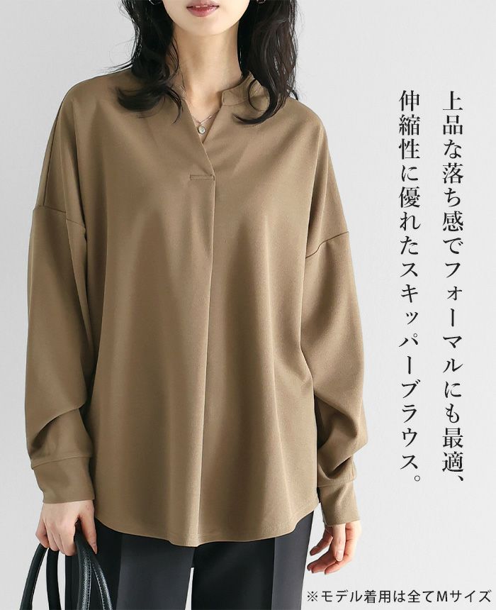 梨地スキッパーブラウス