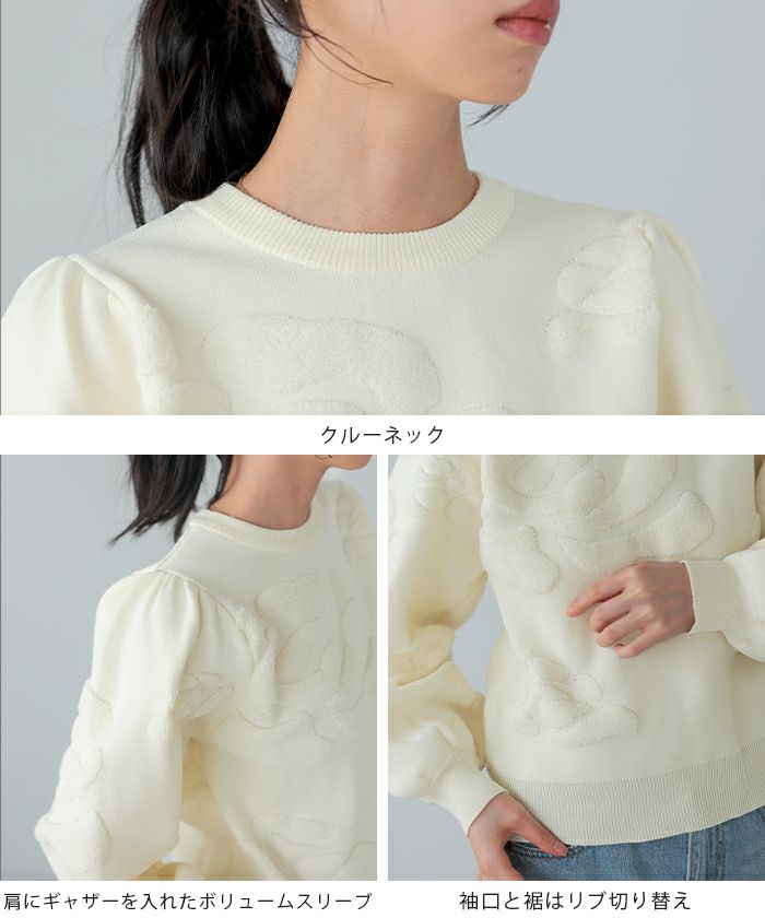 他の画像を見る ニット セーター 花柄 スポンジニット レディース トップス ボリューム袖 ギャザー スタイルアップ[24WI] パイルジャガードROSEニットトップス 価格 ¥ 4,950 税込 カートに入れる お気に入りに登録する